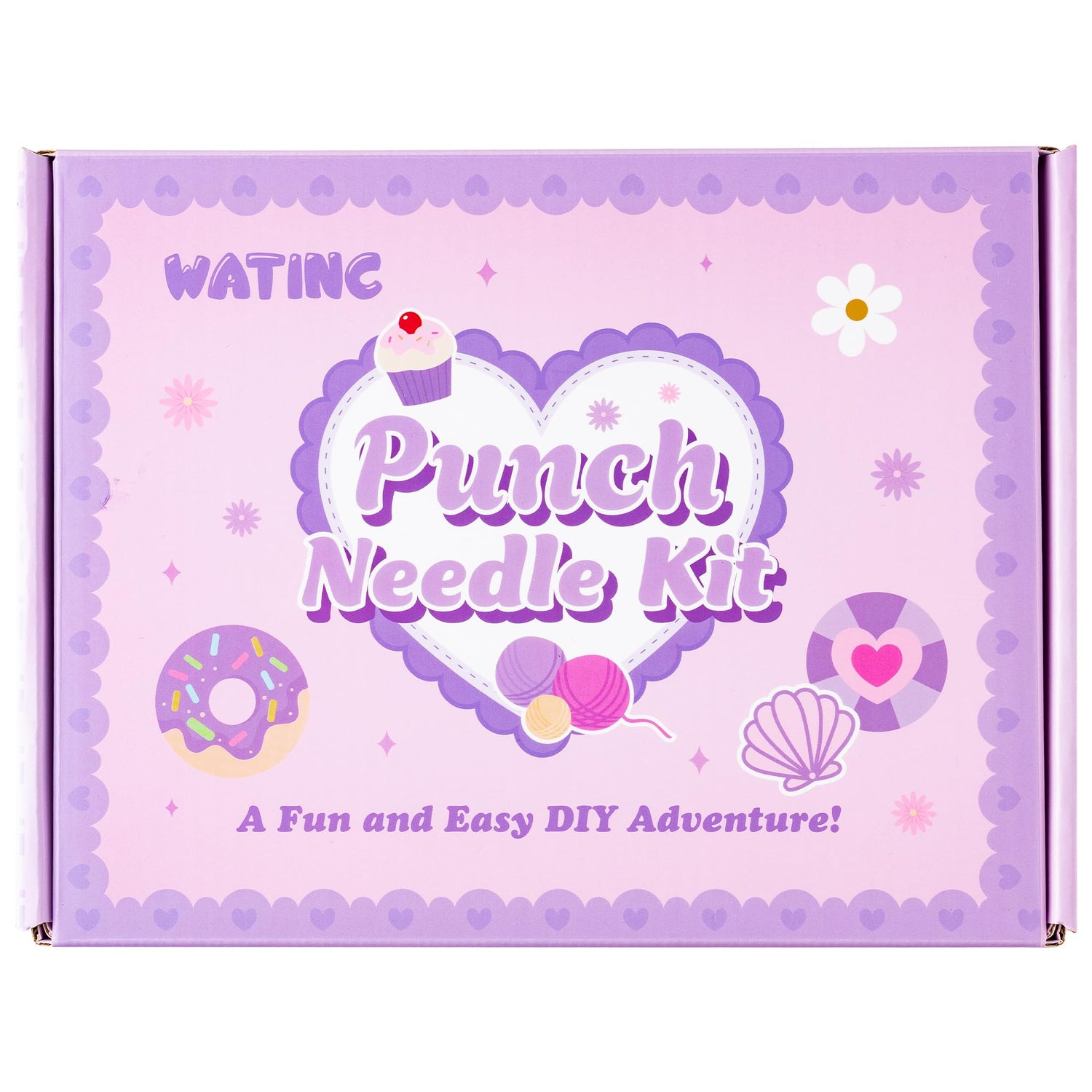 WATINC Punch Needle Coaster Kits - 23Pcs Easy Art Work Decor Craft Supply for Beginners, DIY Set of 6 Unique Pattern Tufted Pads with Adhesive Felt Yarns Tools Instruction Customized Boxes (Purple)