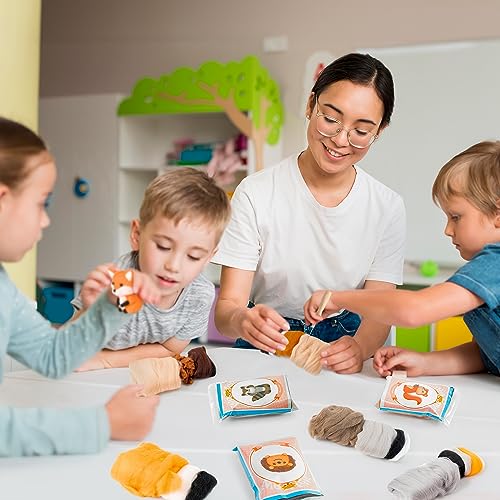 WATINC Set of 5 Woodland Wool Needle Felting Kit, Fox Owl Hedgehog Squirrel Raccoon Animal Doll Wool Felt Needle Felting Tools Foam Pad, DIY Needle