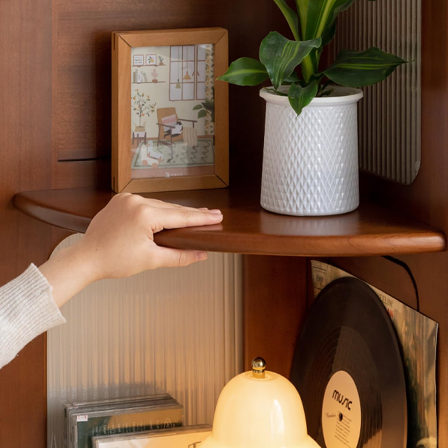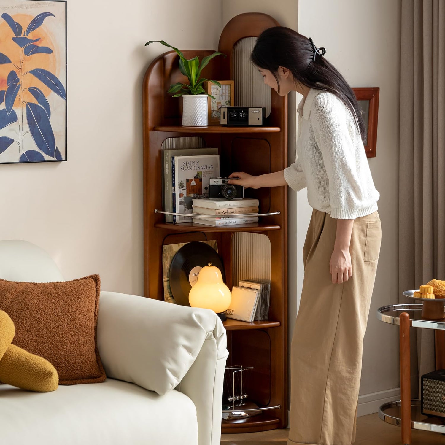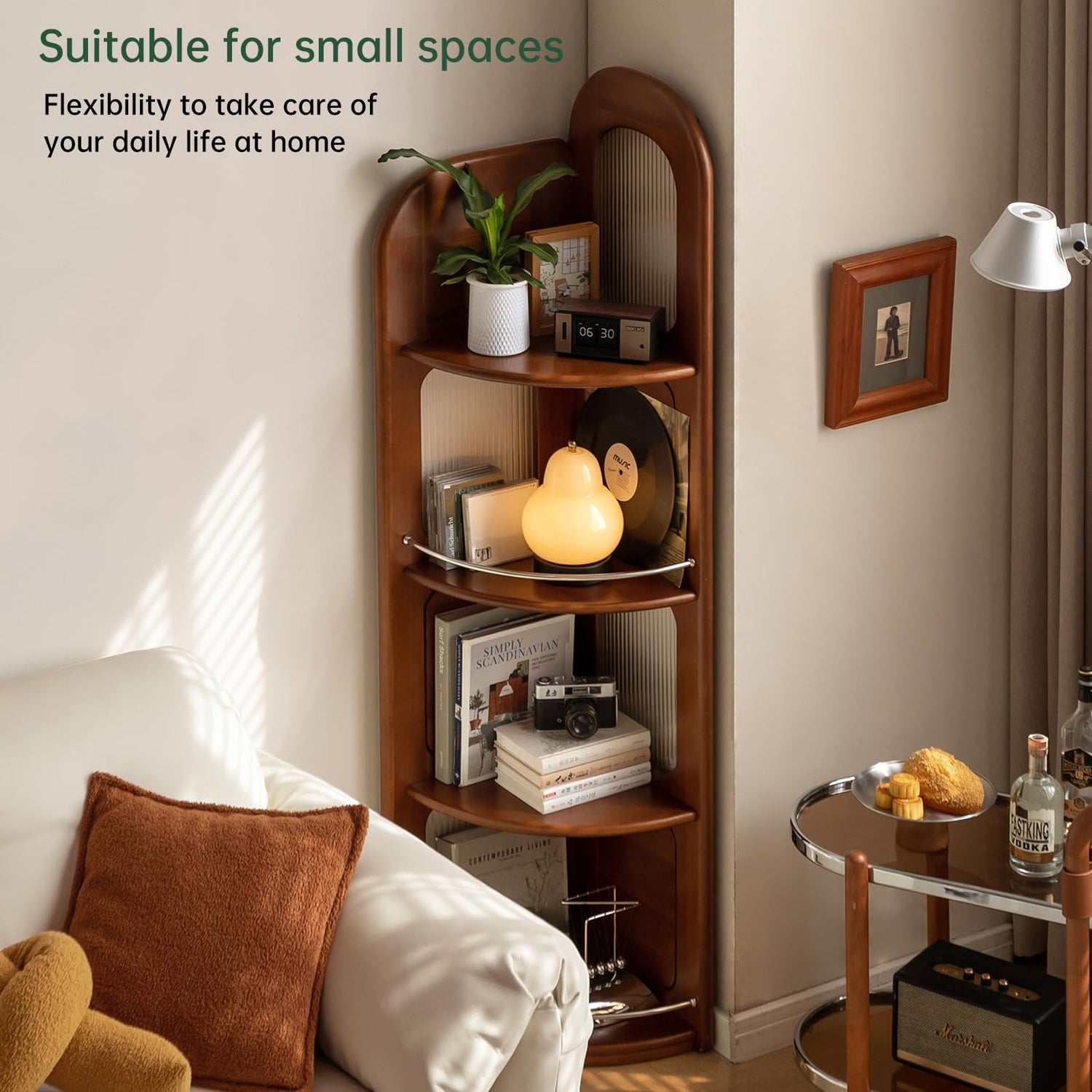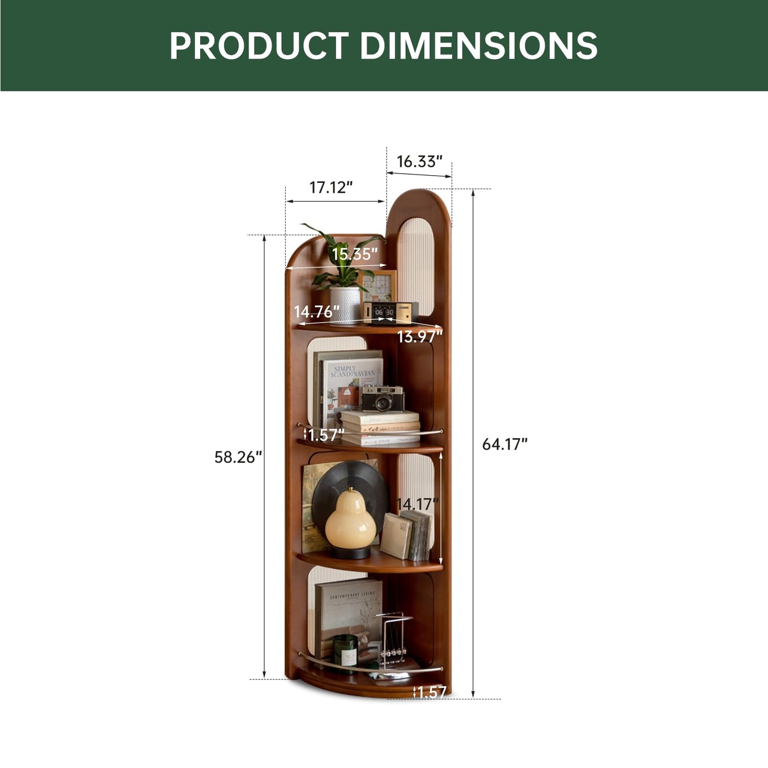 - Space Saving: Elevate your space with this 64-inch, 4-tier open bookshelf, blending vintage charm and modern functionality. Its compact corner-friendly design maximizes vertical storage for books, plants, or décor in small rooms