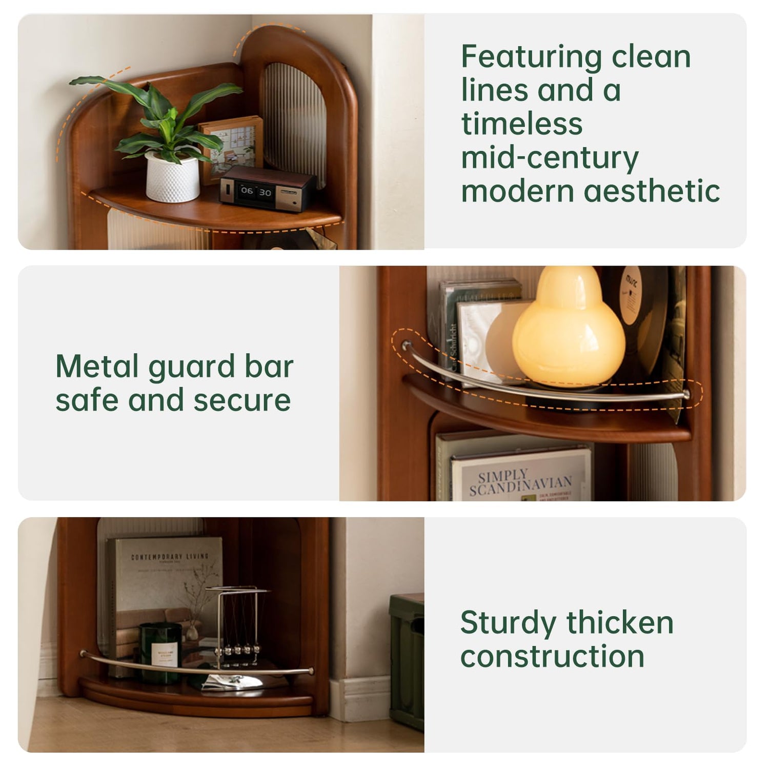 - Elegant Design: Featuring clean lines and a timeless mid-century modern aesthetic, this solid wooden bookshelf blends seamlessly into any home office, study, or workspace. Its minimalist design enhances functionality while maintaining an elegant, clutter-free look