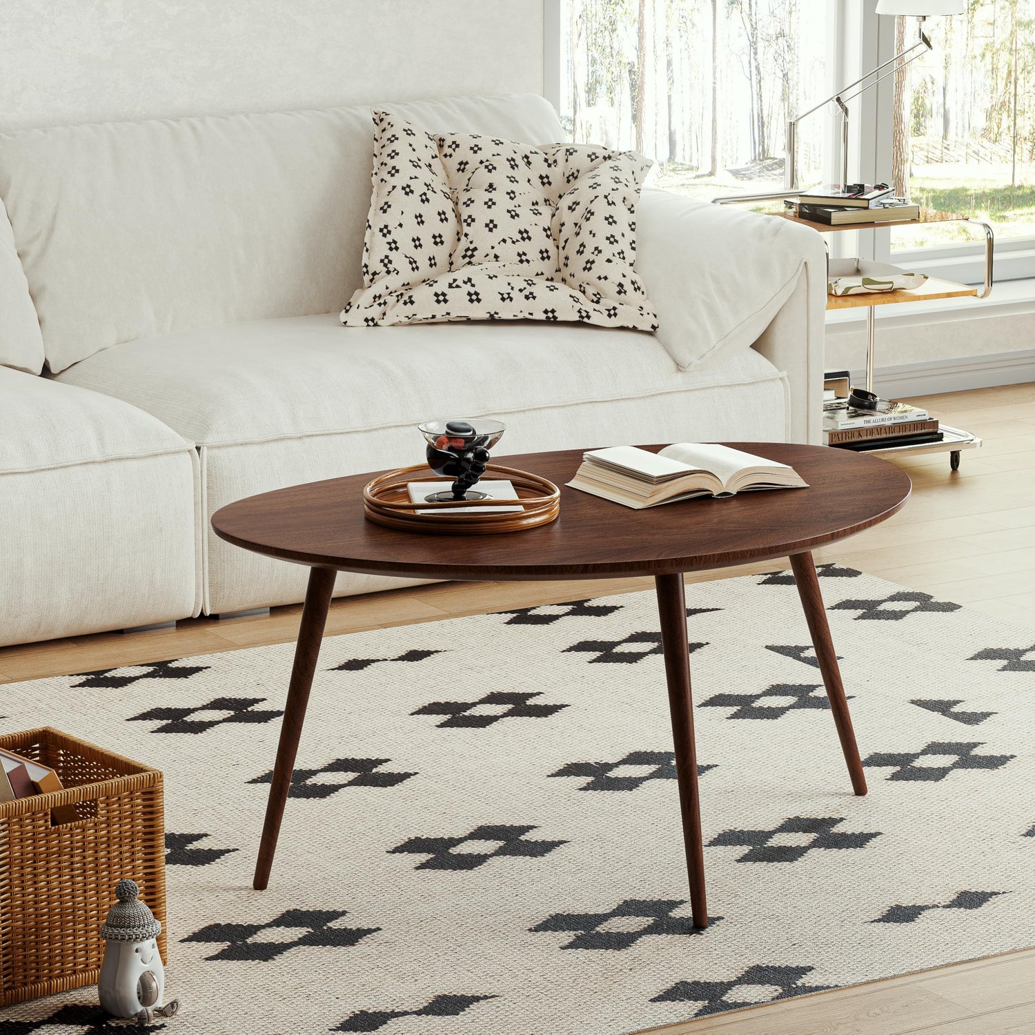 - 【Classic Mid-Century Modern Style】Featuring a distinctive oval triangle design, this round mid-century coffee table creates a sophisticated yet practical layout with its high-and-low combination. The timeless mid-century modern coffee table style seamlessly blends with most home décor, adding elegance and charm.