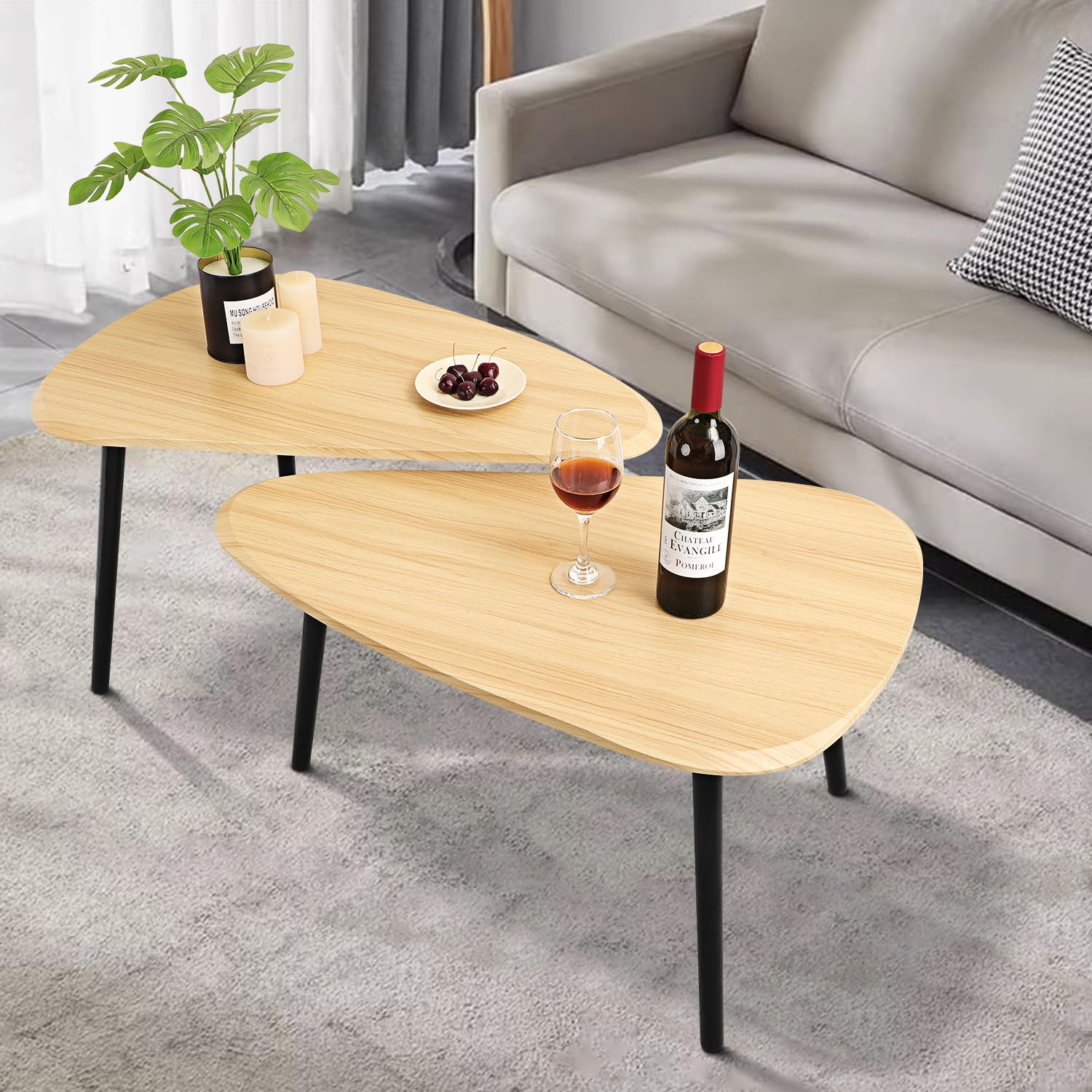 WDSHIYI Wood Nesting CoffeeTable Set of 2 Irregular Accent Table for Living Room Bedroom Industrial Small Stacking Side Tables for Couch,Natural