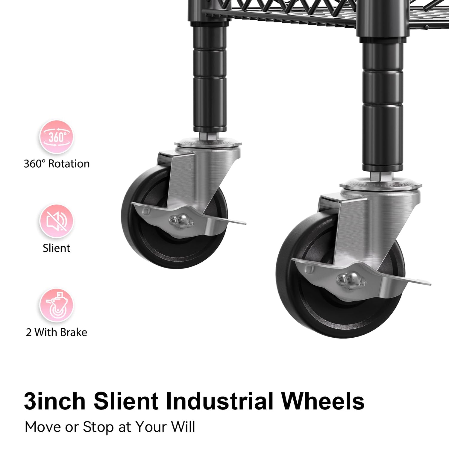 - 360° Silent Casters Utility Cart: The 3 tier rolling cart is designed with 4 silent casters; it transports heavy loads swiftly and smoothly. include 2 fixed locks wheels can hold the heavy duty utility carts with wheels firmly in place for added stability.