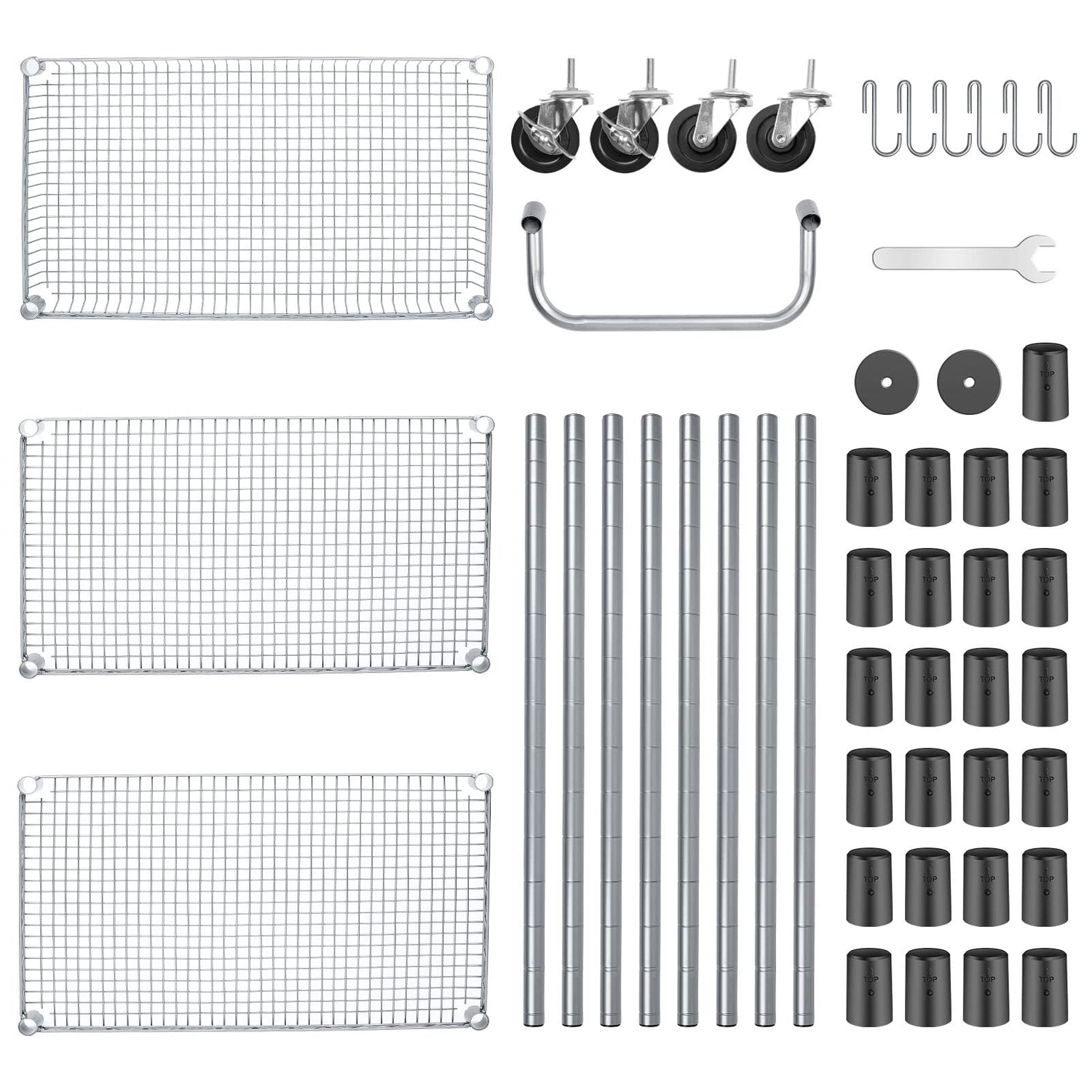 Details: WDT heavy duty utility cart is 3 tier kitchen cart with liners and hooks. It made up of 3 Shelves,a handle bar and wheels. The shelf height is adjustable. The rolling cart includes 4 wheels for mobility; 2 wheels lock for added stability.This metal wire cart offers a great storage space for your belongings.