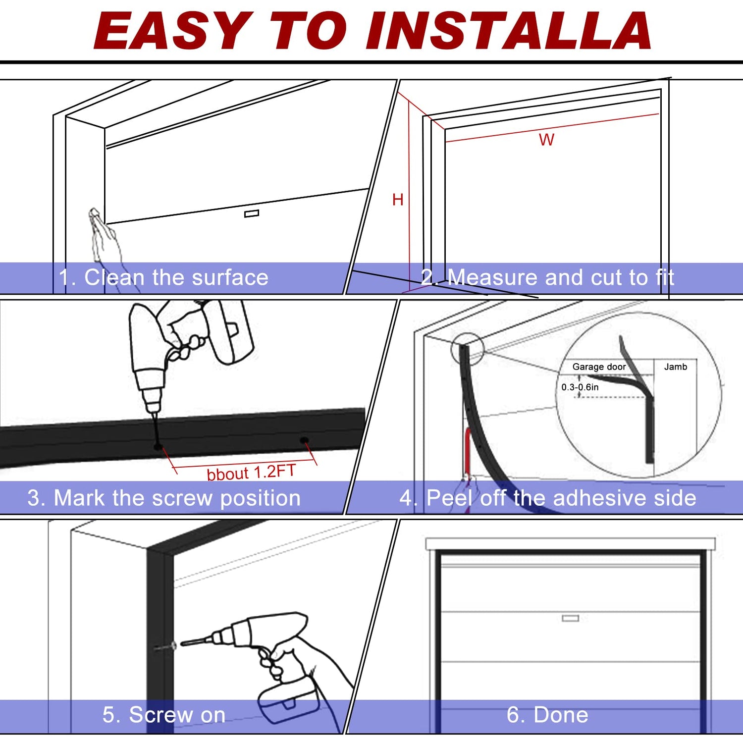 - Easy to Use: our garage door seal top and sides adopts adhesive design, easy for you to cut into desired lengths and shapes, and install on the corresponding positions of your garage jamb, and you can fix the strips again with screws for better effect