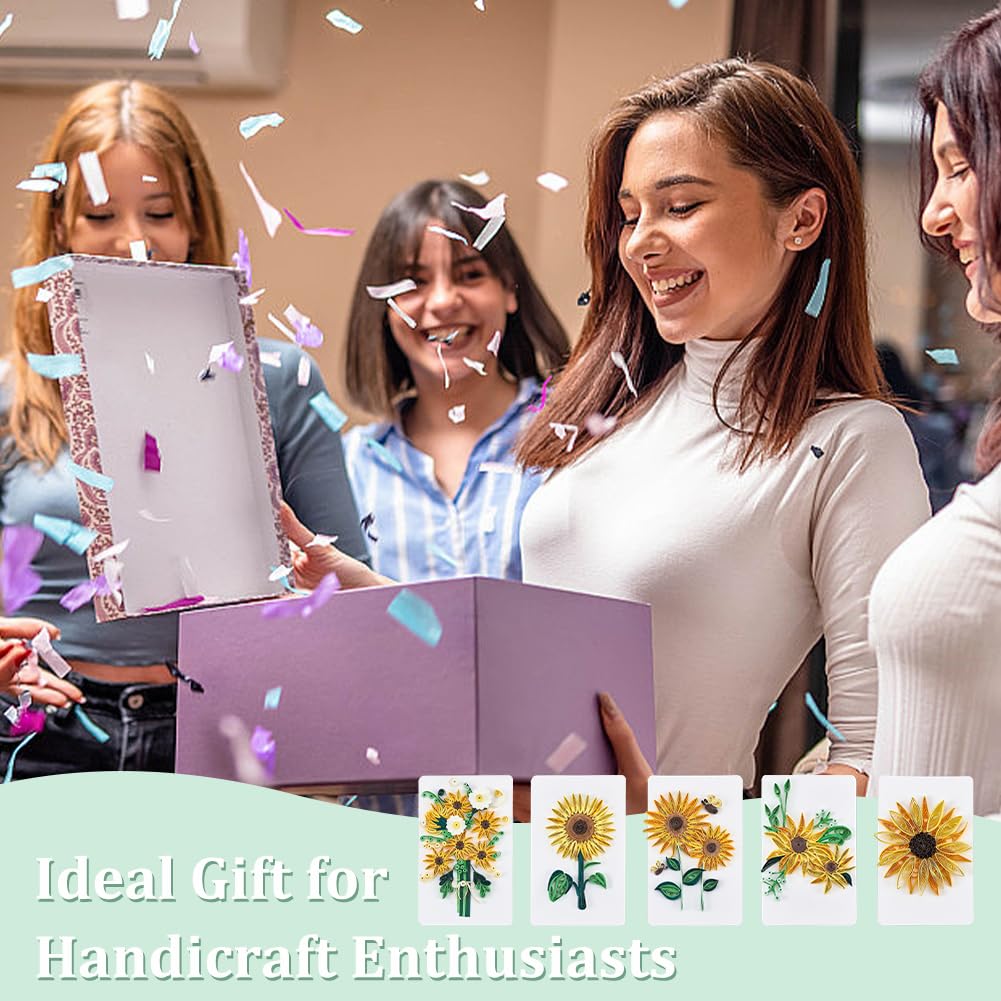 WEBEEDY 20 Sets Paper Quilling Kit for Adults Beginners DIY 5 Styles Sunflowers Quilling Greeting Card Making Kit with Instruction DIY Quilling Supplies for Birthday Halloween Christmas Party Gifts