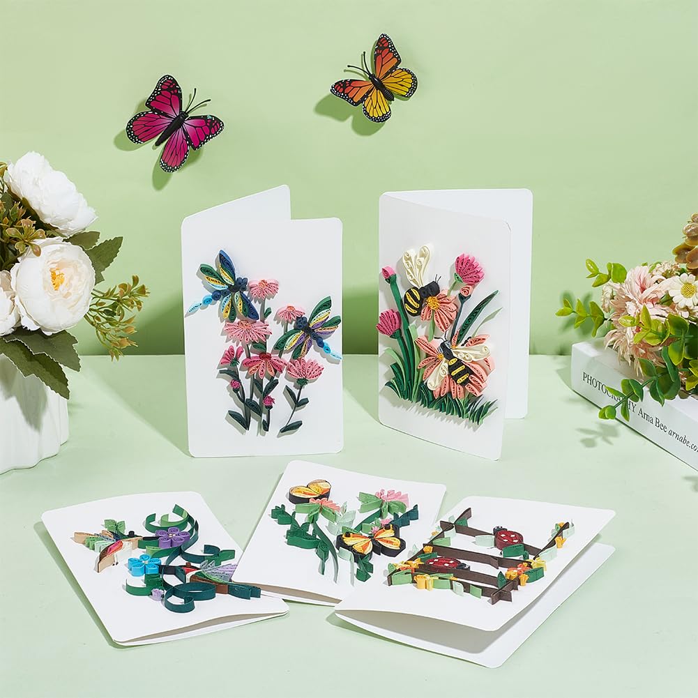 WEBEEDY 20 Sets Paper Quilling Kit for Adults Beginners,Spring Animal Flower Greeting Cards Making Kit with Instruction Tutorial,Handmade Bee Butterfly Dragonfly Quilling Card for Friends Families