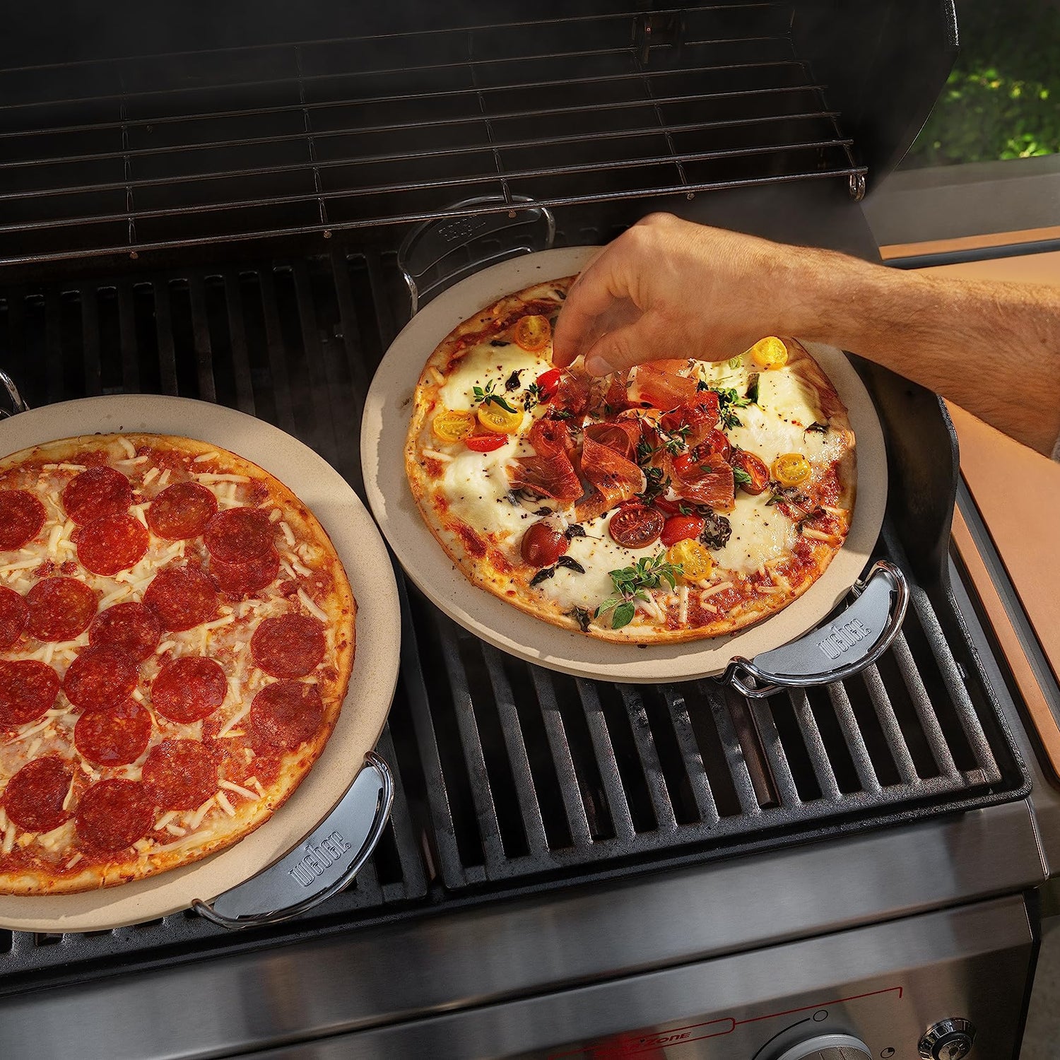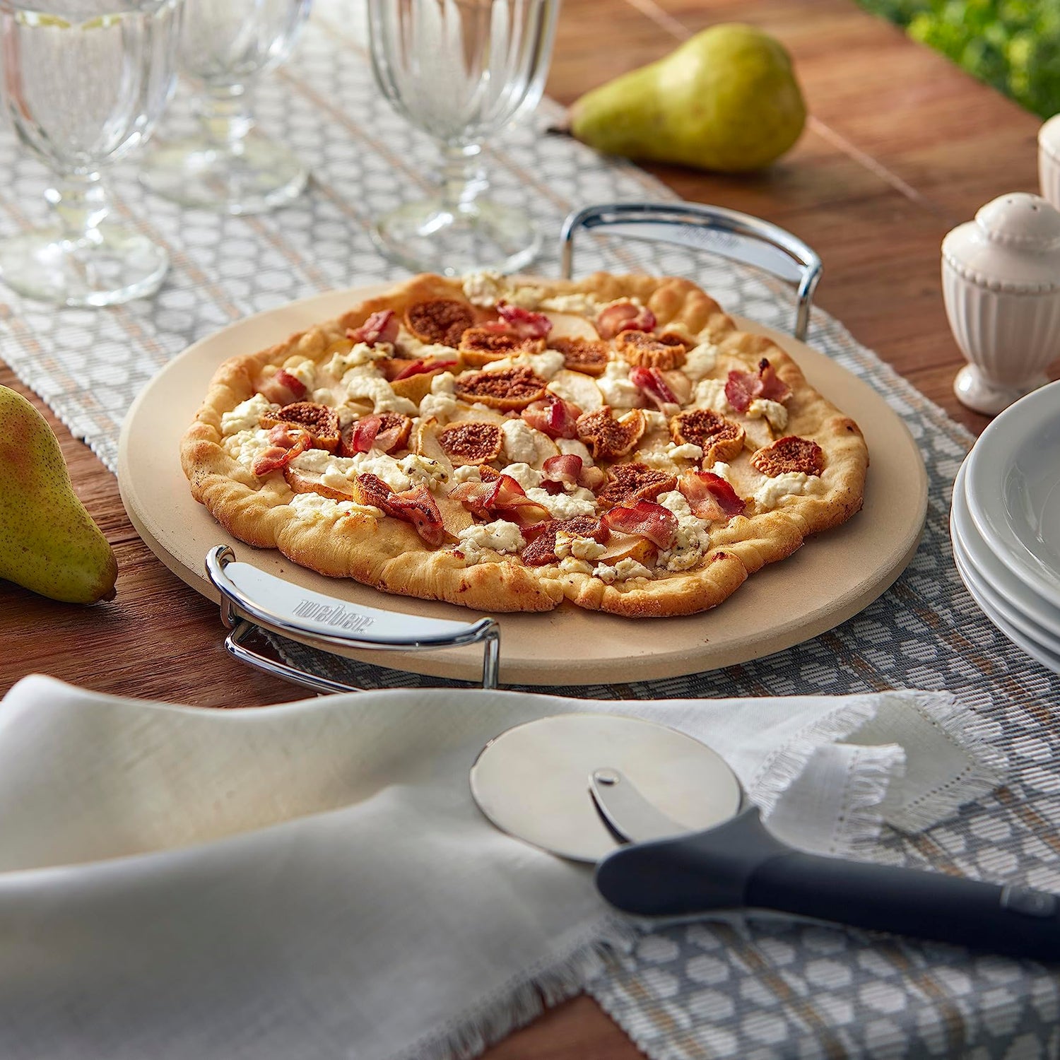Weber Gourmet BBQ System Pizza Stone with Carry Rack,16.7" Long,Beige