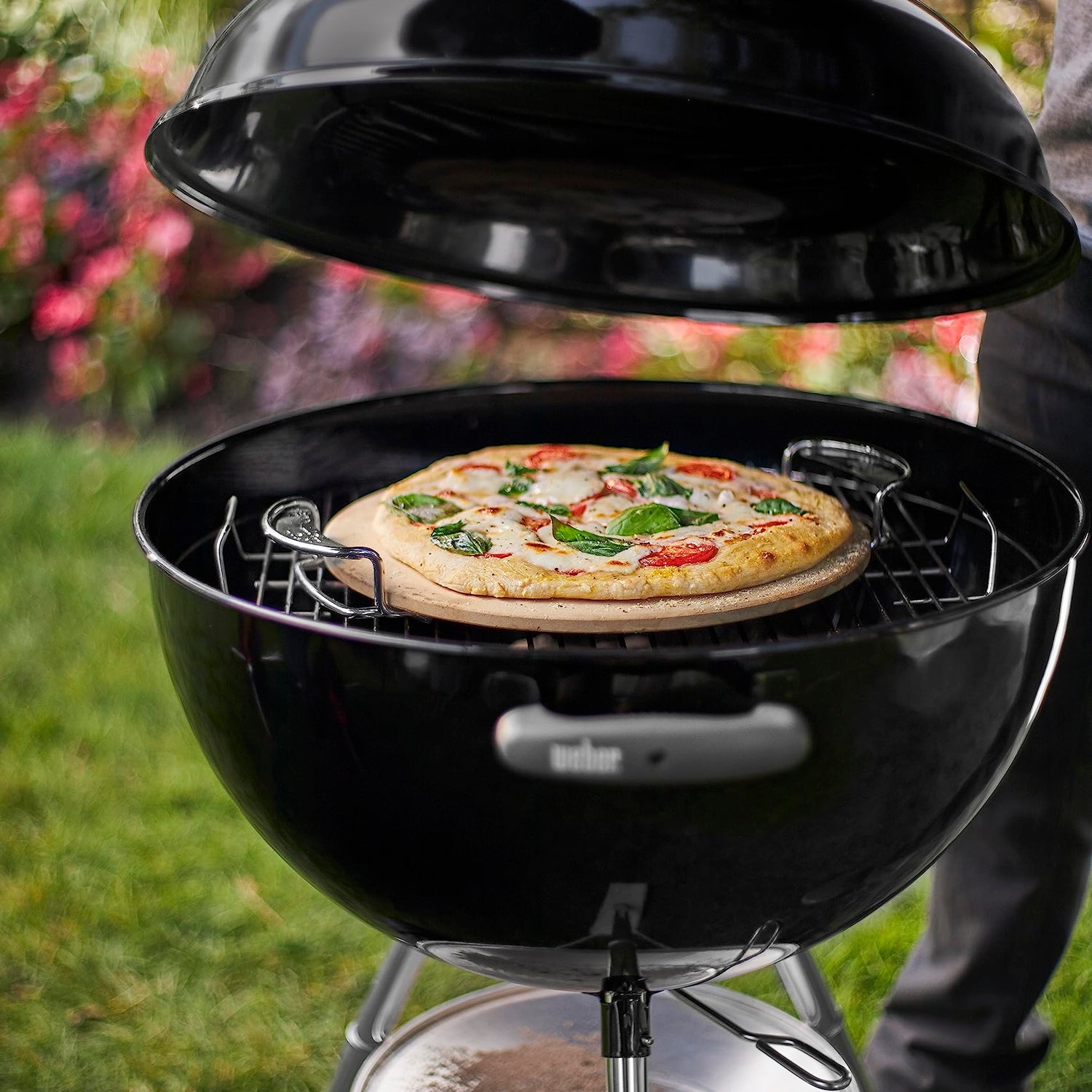 Details: Pizza stone enables you to add a smoky flavor to your favorite homemade pizzas! Cordierite stone absorbs moisture during cooking, producing light and crispy thin crust pizza. Carry rack makes transporting the pizza quick and easy. Designed for use with the Gourmet BBQ System charcoal grate.
