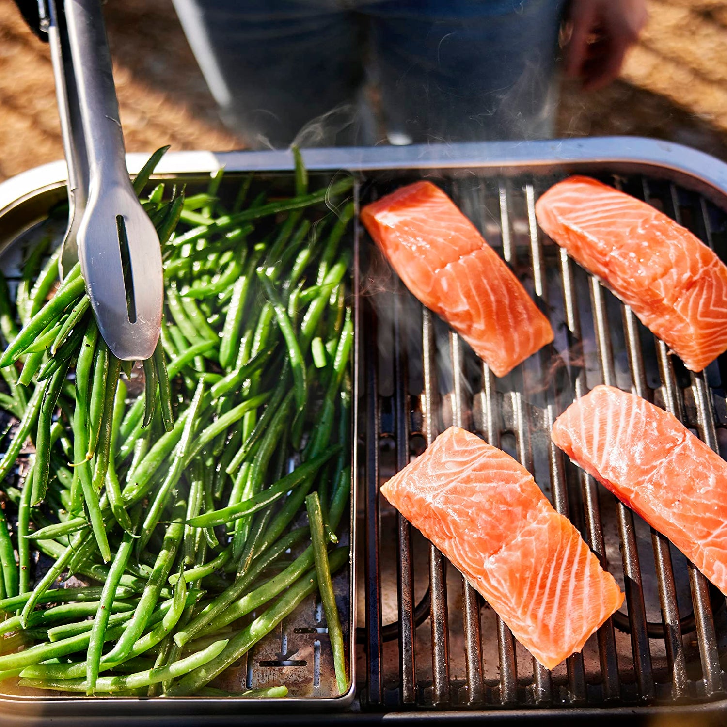 - FROM FROZEN: Grill from frozen with a steam system that thaws frozen foods, like steak and chicken, while your grill preheats. When it’s ready, sear on the grilling side for easy weeknight meals.