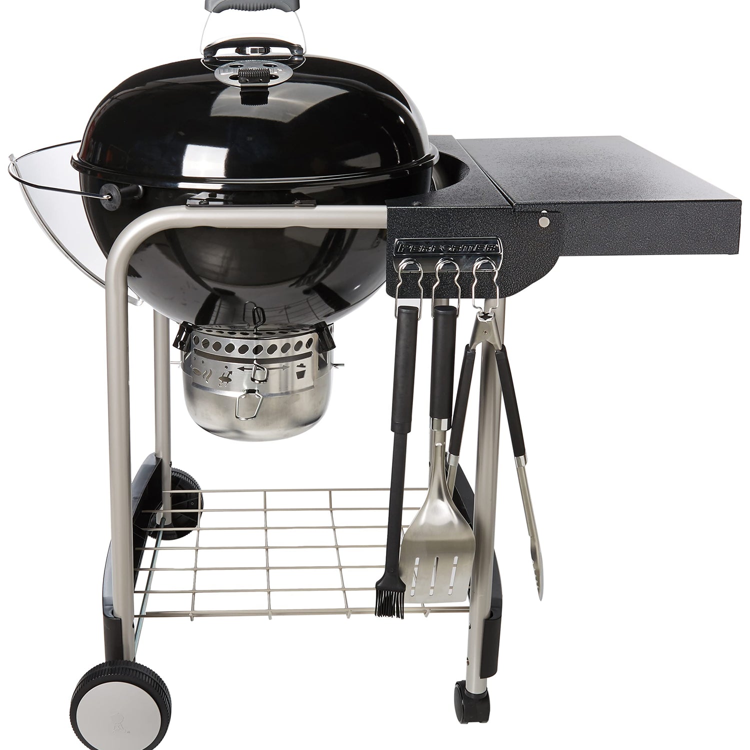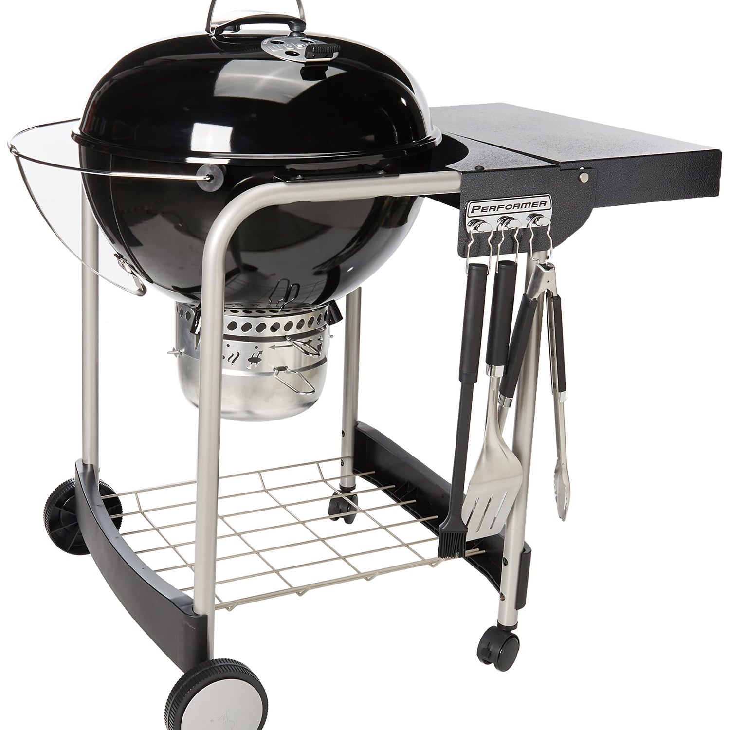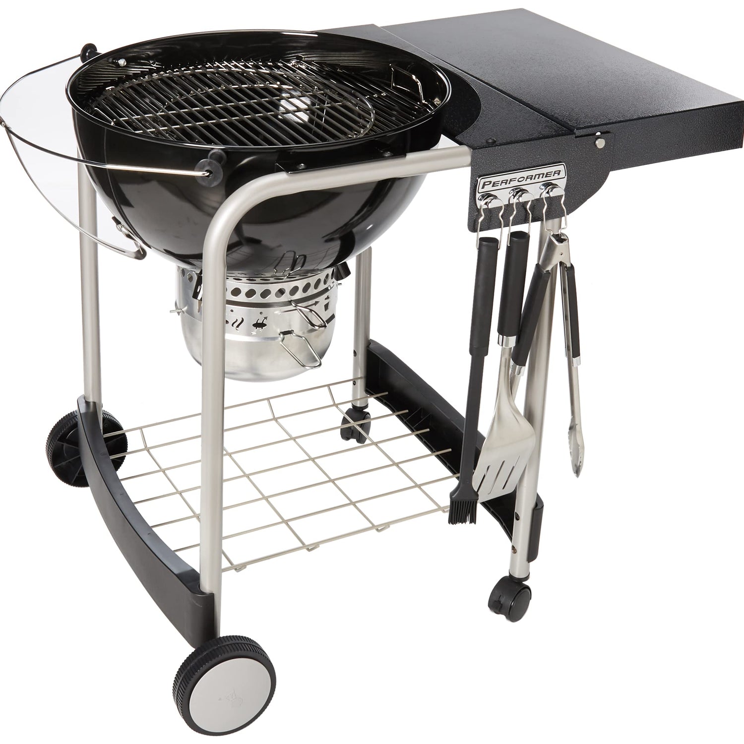 - The powerful performance and convenient features of the Performer charcoal grill is your excuse to ignite the coals every day. Prep food on the work table, hang grilling accessories from the tool hooks, and then clean up with ease—but only after you’ve taken every last bite of your perfectly grilled meal.