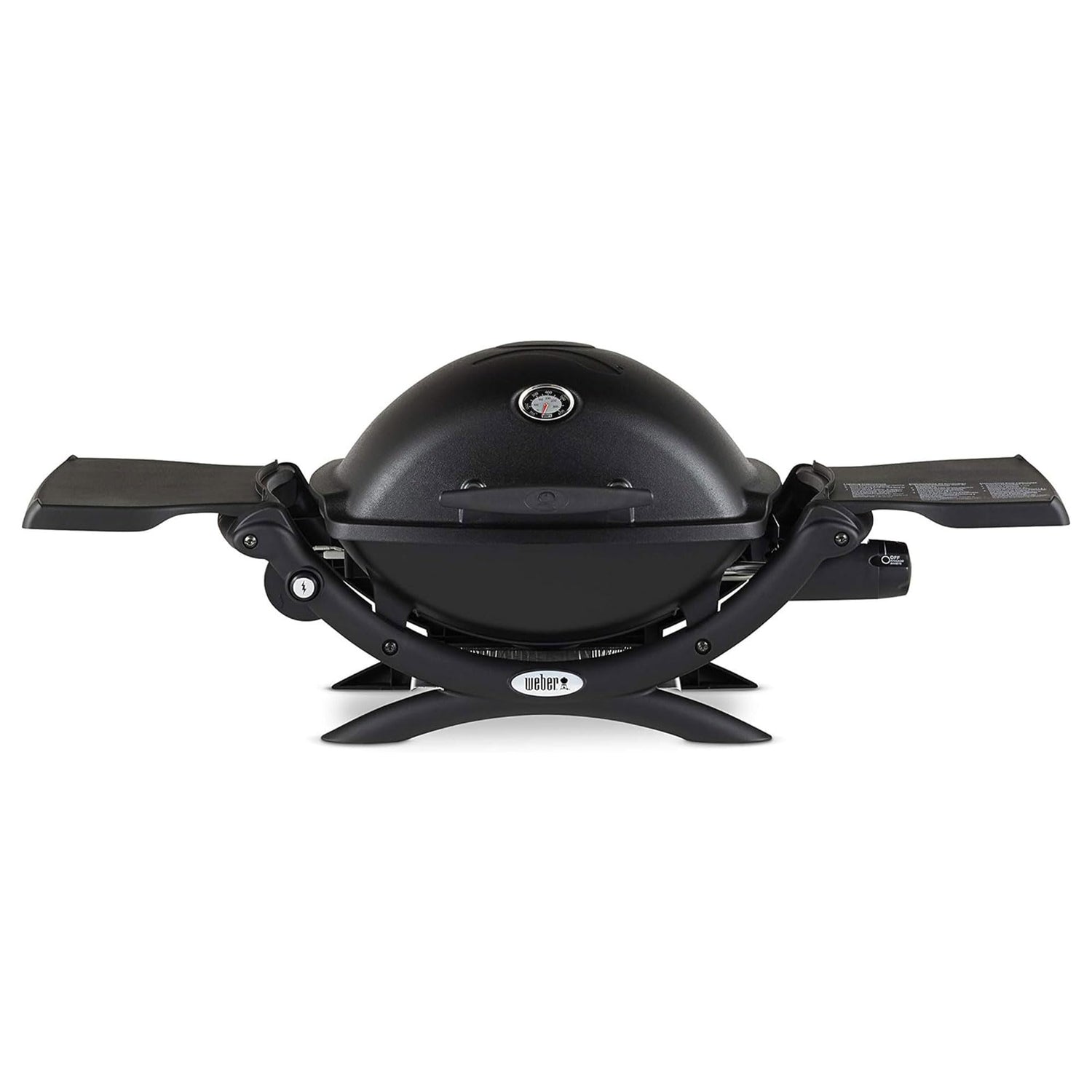 Details: Restyled for 2014, the Weber Q 120 is now the Weber Q 1200. The grill has the same great performance and sleek styling, but adds new aesthetics that are both functional and fun, including larger grip handle and control knobs, ergonomic side handles, sturdy front and rear cradles, larger-sized fold-out side tables with greater rigidity plus the familiar Weber Q logo branded in the lid. Split grates allow for a grate/griddle cooking combination: Just replace one of the grates with the Q 1000-series compatible griddle (sold separately) and experience an unexpected way to prepare breakfast, lunch and dinner on your grill. The tall lid accommodates the grilling of small roasts and birds, while the large built-in thermometer allows you to monitor temperatures inside the grill. Durable, but lightweight, the cast-aluminum construction of the Weber Q 1200 makes this super-portable grill the perfect tailgating companion. Reliable starts are assured with the electronic ignition. Steaks, chops, burgers and dogs are easily handled, but a large variety of other foods may also be cooked at any temperatures from low to high. Just dial-in the proper heat setting by adjusting the infinite control burner valve. For grilling on-the-go, the Weber Q 1200 runs on disposable LP cylinders (not included). For at-home use an optional LP adapter hose for 20-lb. tanks is available as an accessory. May be used with Weber Portable Cart model No.6557.