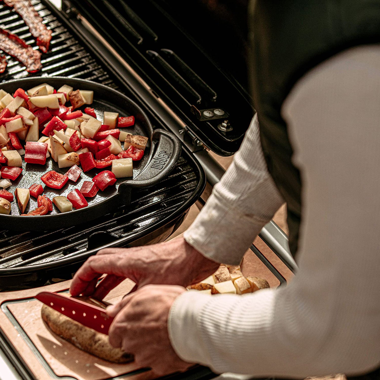 - One handed setup and collapse. Grill is attached to the cart for quick & easy setup.