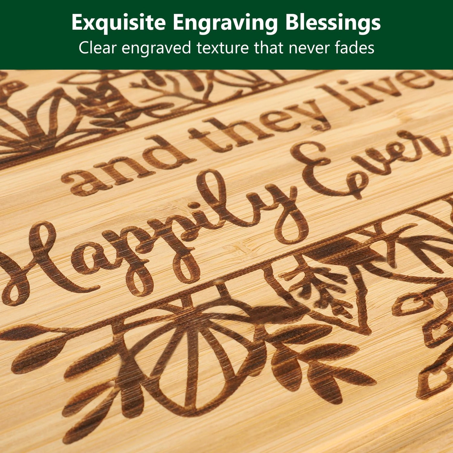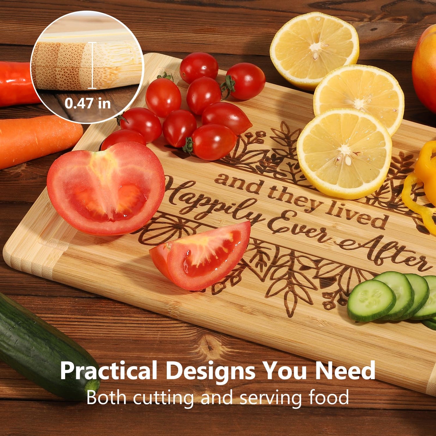 Wedding Gift for Couple 2024, Engraved Cutting Board Bridal Shower Gifts for Bride and Groom Engagement, They Lived Happily Ever After Marriage Cutting Board, Newlywed Wedding Gift for Couples
