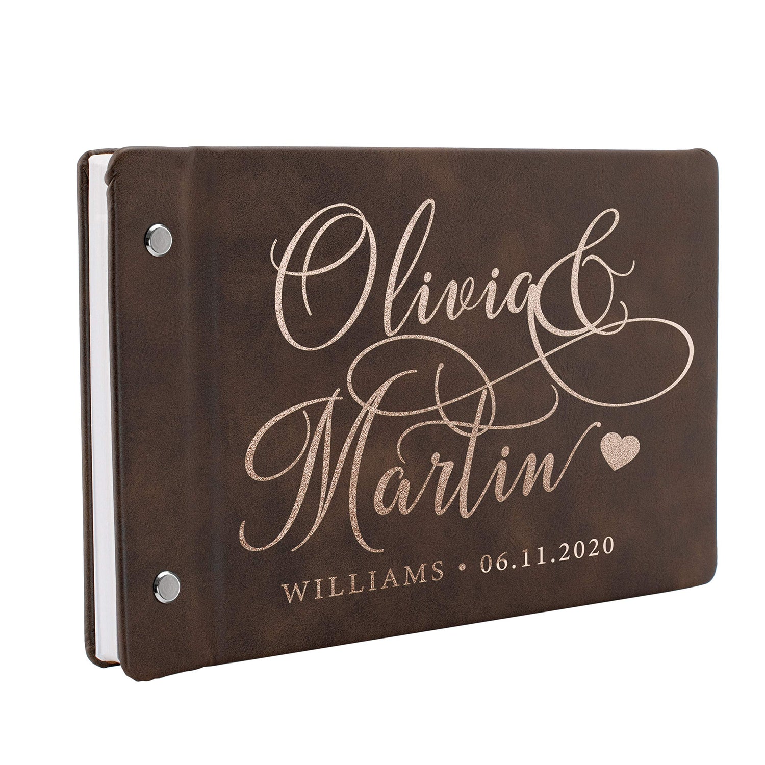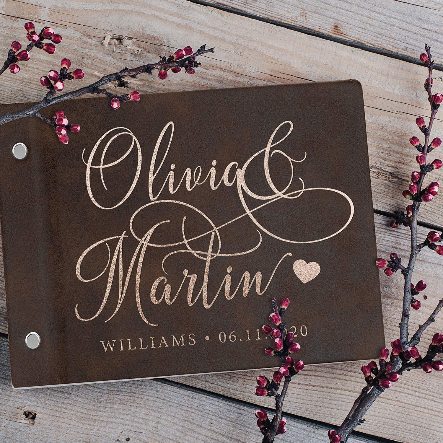 - CUSTOMIZED GUEST BOOK - Personalized leather wedding guest book. Click on " Customize Now " button and choose between 8 elegant design. Create a beautiful guest book that carry your names, date with your design.