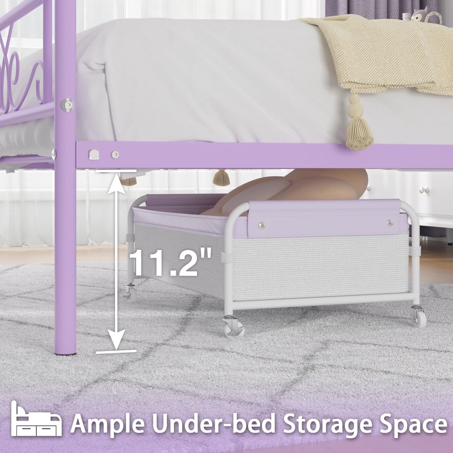 Weehom Twin Size Bed Frame with Headboard and Footboard Steel Slats Support Twin Metal Bed No Box Spring Needed Easy to Assembly, Purple