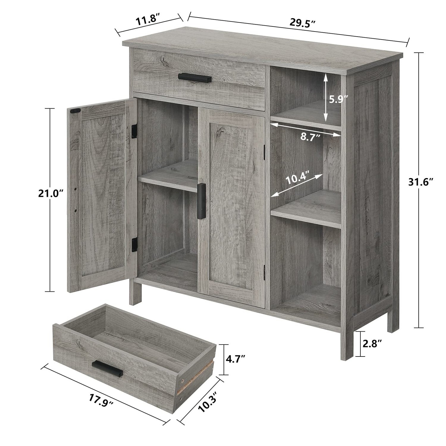 WEENFON Storage Cabinet, Bathroom Cabinet with Drawer, Coffee Bar Cabinets with Doors and Shelves, Freestanding Cupboard for Living Room, Grey UNSNG086CV1