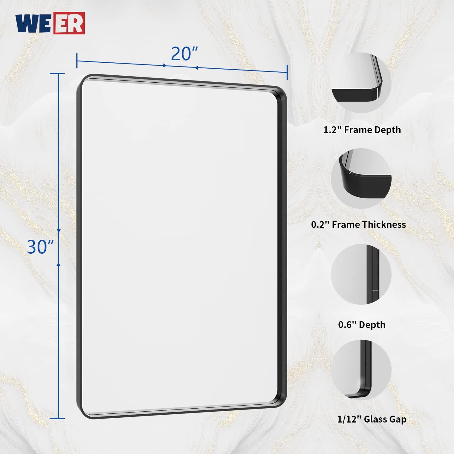 - 【Durable Black Metal Framed Mirror】: WEER black bathroom vanity mirror is made of premium alumium alloy frame, which is anti-rust and non-deformed. Practical rectangle rounded corner mirror with simple classic clean line features the modern and industry style.