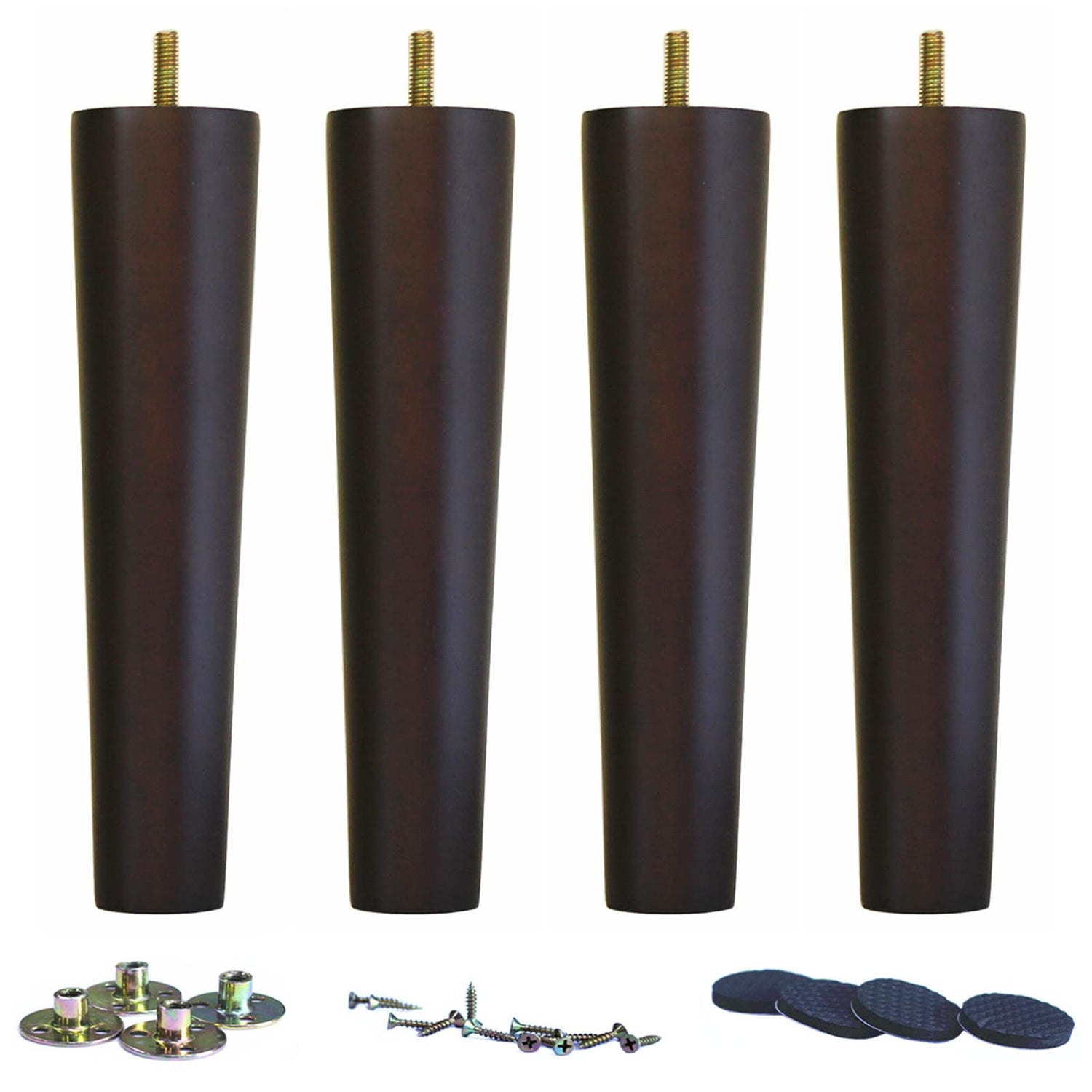 WEICHUAN Round Solid Wood Dark Walnut Finish Replacement Sofa Couch Chair Ottoman Loveseat Coffee Table Cabinet Furniture Wood Legs Wood Furniture Legs(8" Set of 4)