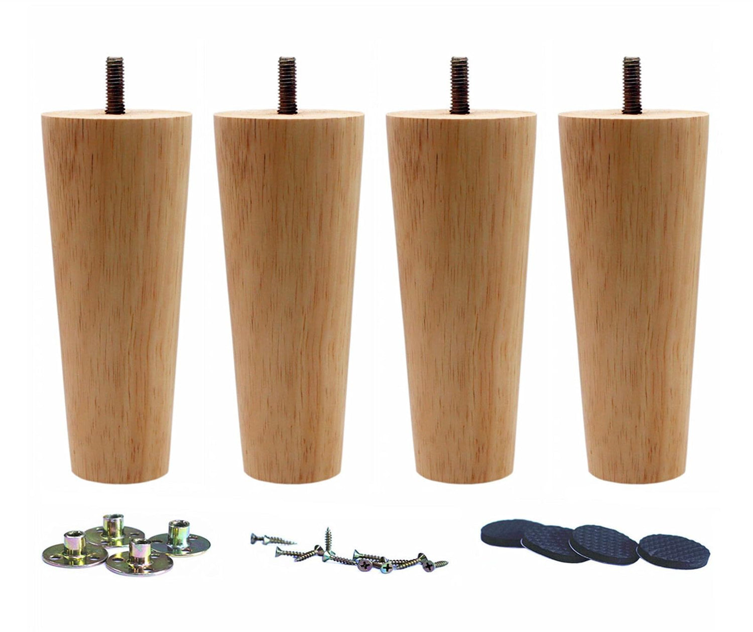 WEICHUAN Round Solid Wood Replacement Sofa Couch Chair Ottoman Loveseat Coffee Table Cabinet Furniture Wood Legs(6" Straight Set of 4)