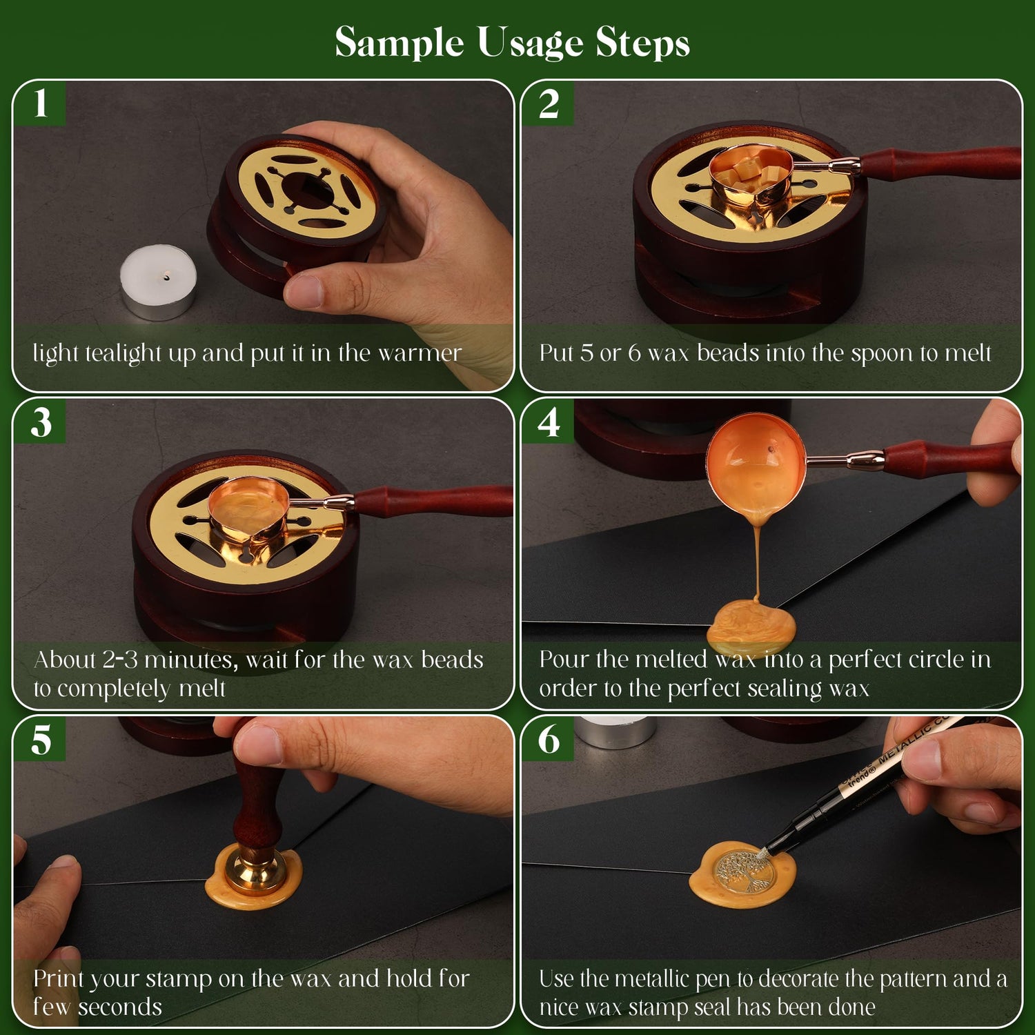 - [Easy To Use] The wax sealing stamp set is very easy to operate that is ideal for wax seal lovers and beginners. The wax warmer and wax melting spoon help you make your own wax seal stamp more efficiently and save your efforts