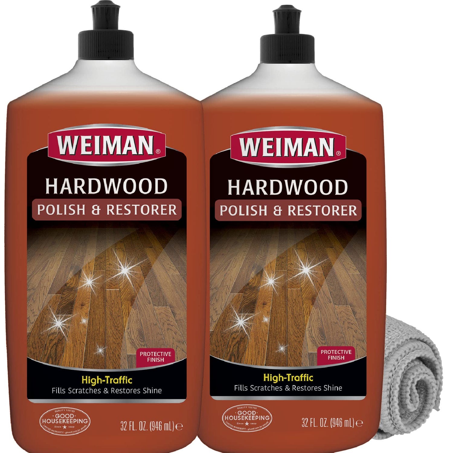 Weiman Wood Floor Polish and Restorer 32 Oz 3PC Bundle - High-Traffic Hardwood Floor, Natural Shine, Removes Scratches, Leaves Protective Layer