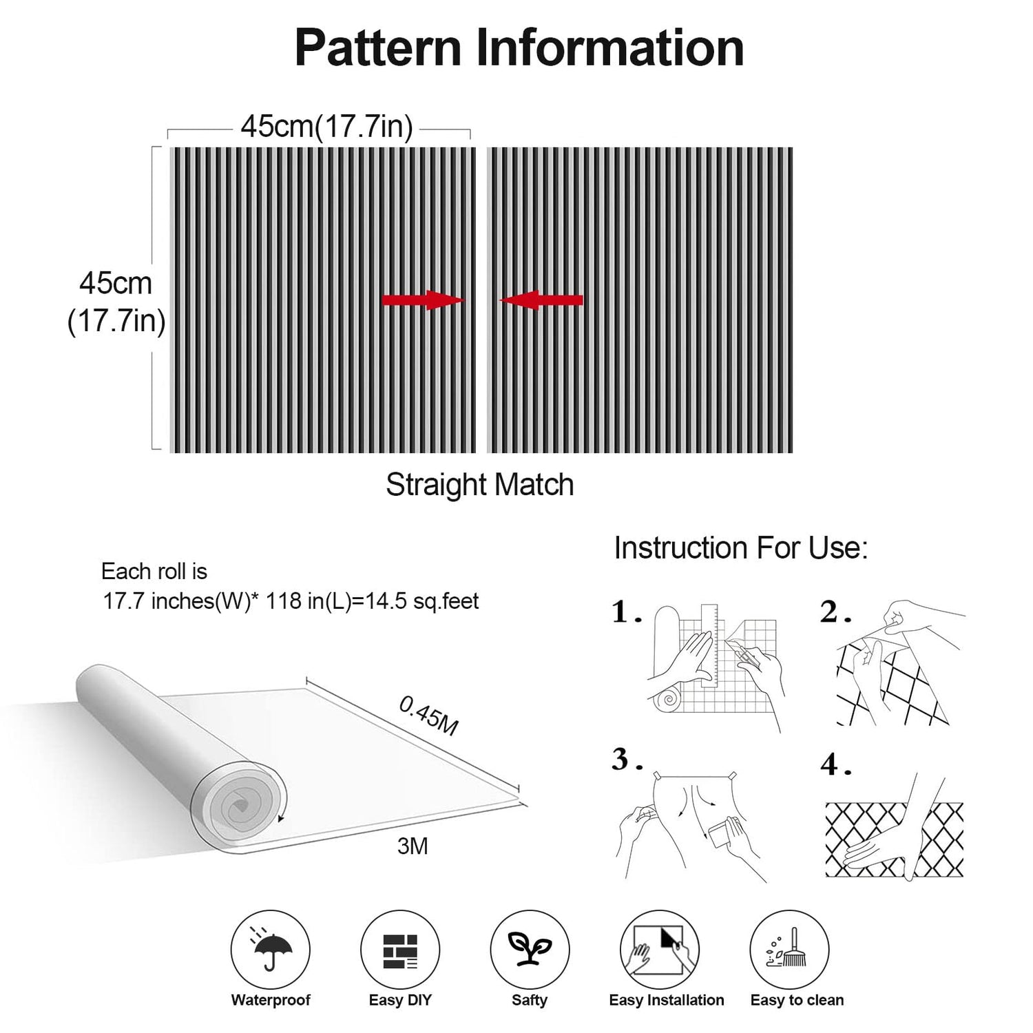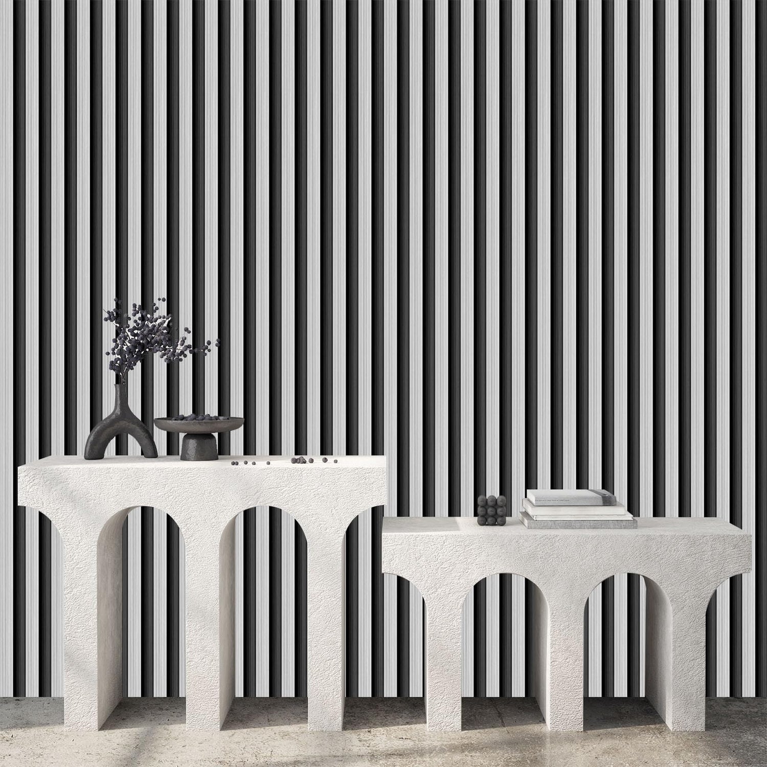 weiseni Peel and Stick Wallpaper Contact Paper White and Black Wood Grain Slat Panels Countertops Modern Removable Renter Apartment Friendly Self Adhesive 3D Easy Vinyl Wrap 118" x 17.7"