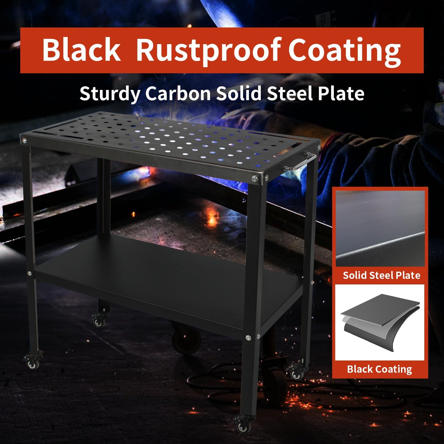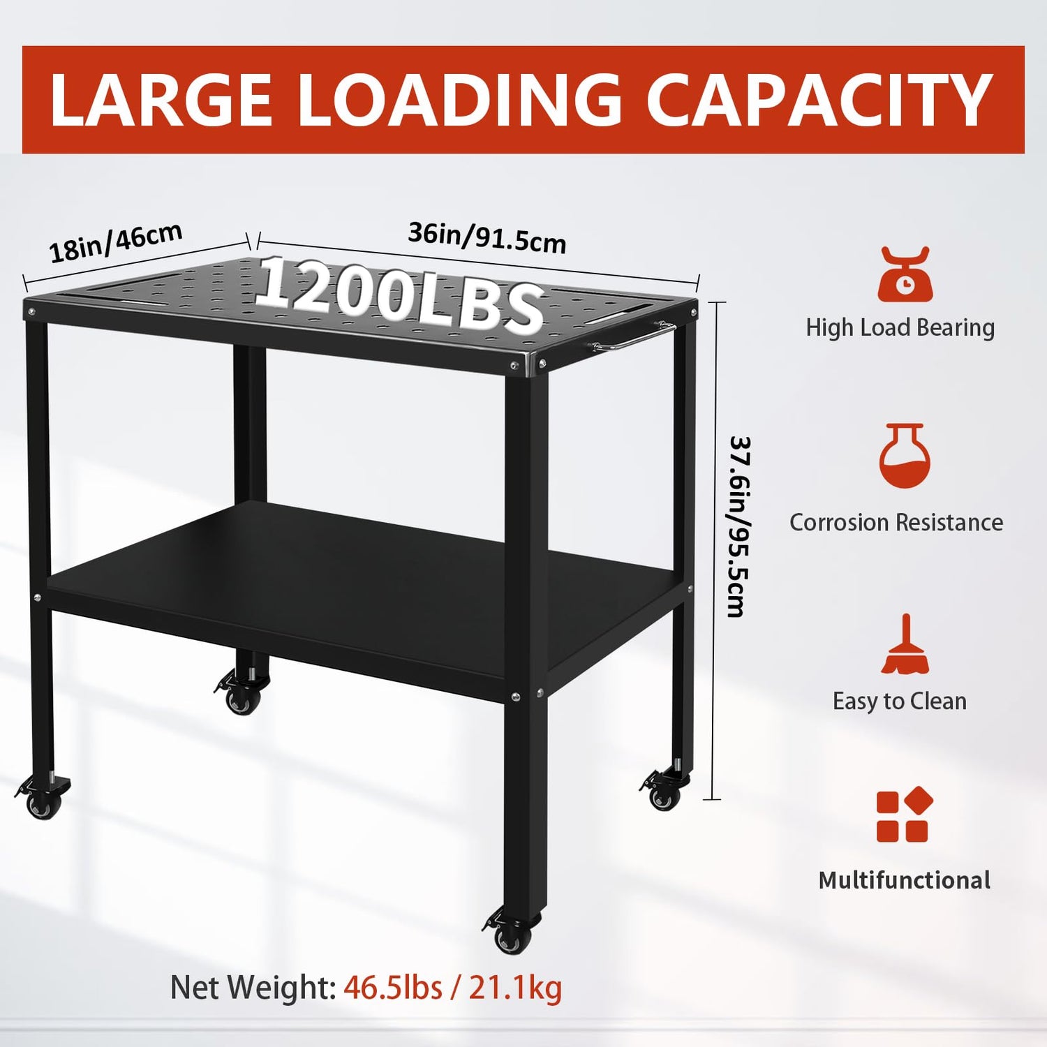 Welding Table Welding Cart 36”×18”, 1200lbs Load Capacity Industrial Workbench with 5/8" Holes Fixture Table with Wheels