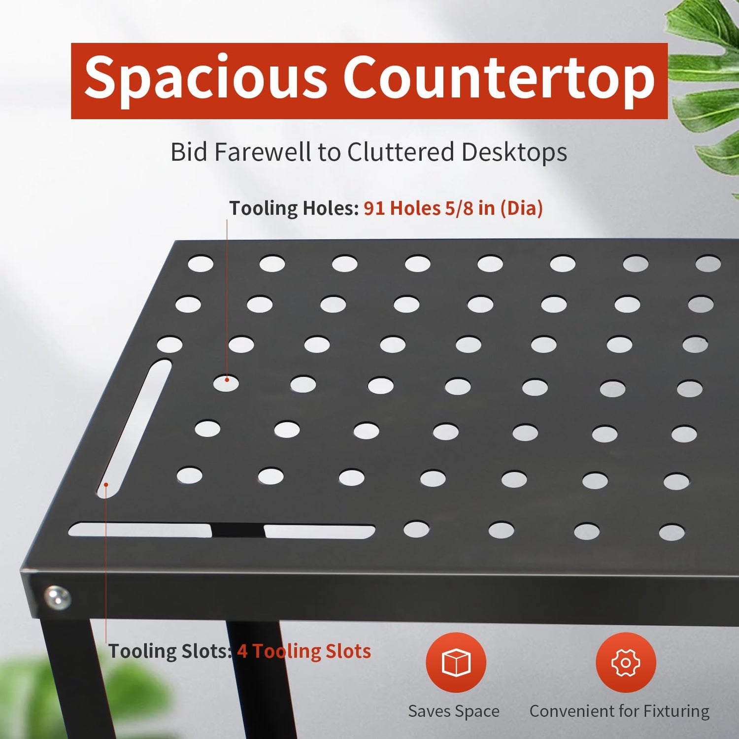 - 【Convenient for Fixturing】5/8-inch fixture holes and 4 tool slots make this welding bench easy to clamp your fixtures.The storage panel underneath greatly increases storage space.