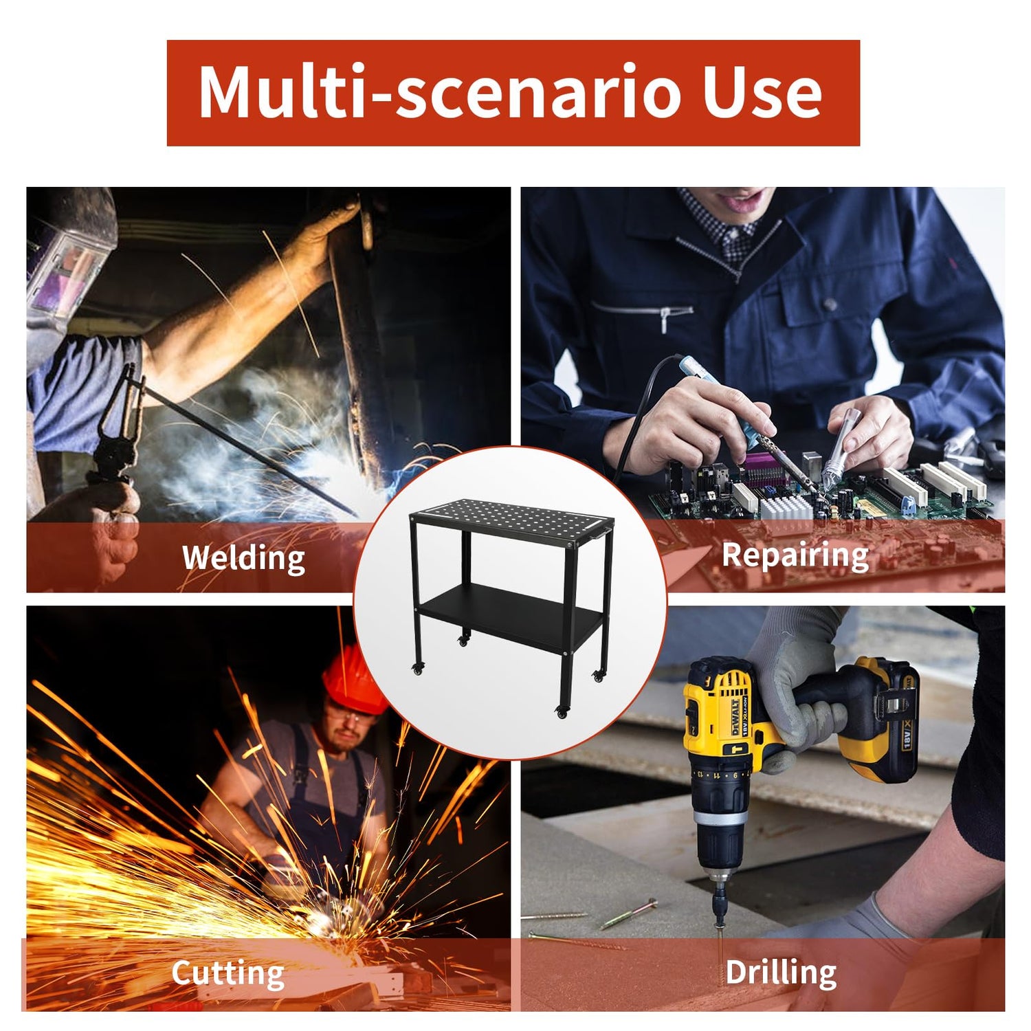 - 【Move with Any Burden】The welding table kit has 4 caster can move smoothly.The 4 wheels with brakes ensure that the welding cart stands smoothly while you work. Easy to weld complex and small parts.