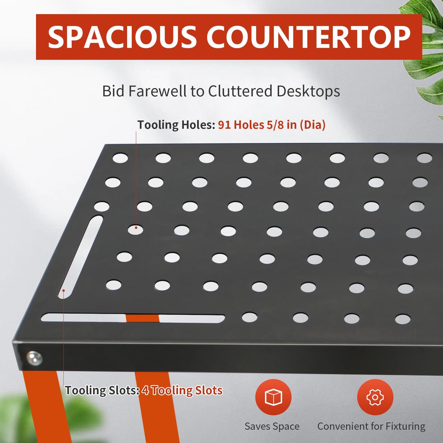 - 【Convenient for Fixturing】5/8-inch fixture holes and 4 tool slots make this welding bench easy to clamp your fixtures. The storage panel underneath greatly increases storage space.
