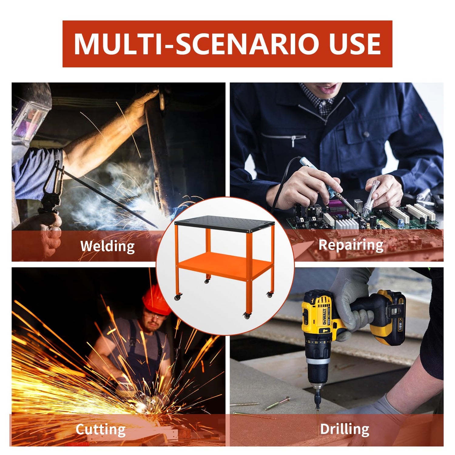 Welding Table Welding Cart 36''×18'', 1200lbs Load Capacity Industrial Workbench with 5/8" Holes Fixture Table with Wheels (Orange)