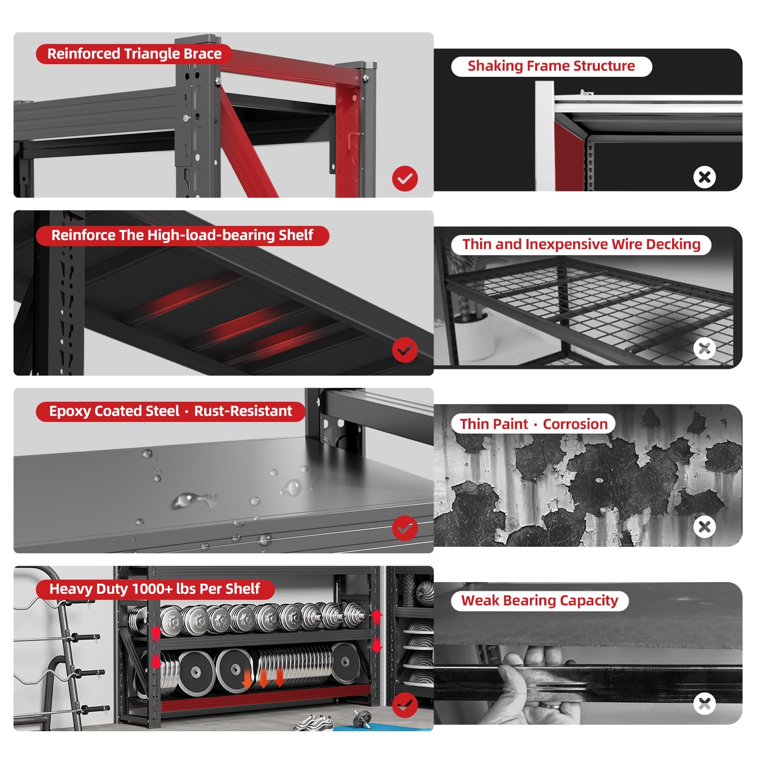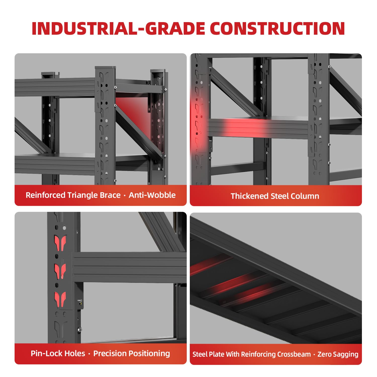 - HIGH STRENGTH AND STABILITY:Heavy-duty shelving adopt a unique triangular column design is based on architectural principles to enhance structural rigidity, optimize weight distribution, provide excellent stability and ensure long-term use without deformation.