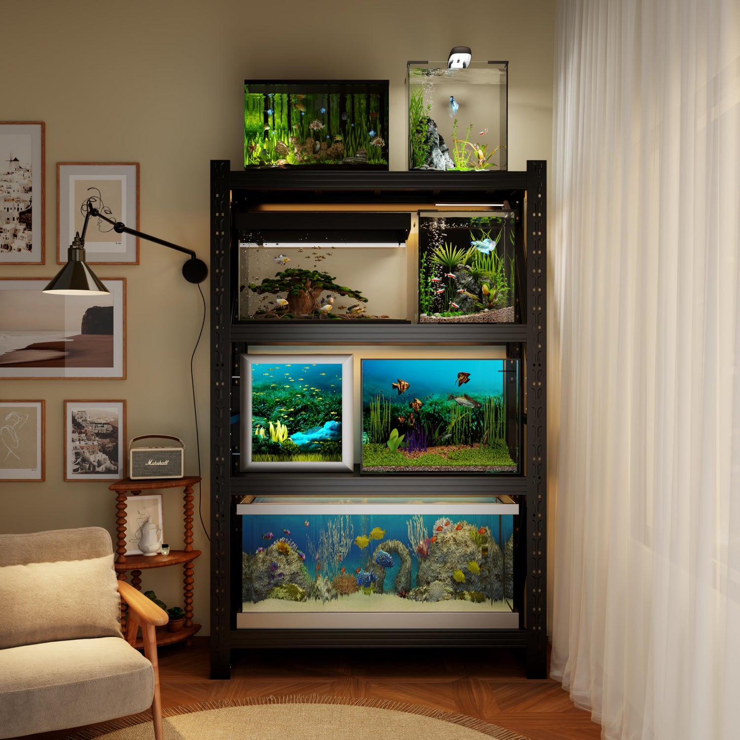 - ADJUSTABLE SHELF, FLEXIBLE AND PRACTICAL:Four layers of metal shelf height can be adjusted to adapt to different sizes of items. Support multiple black metal shelves side by side connection, expand storage space, is the ideal choice for warehousing.