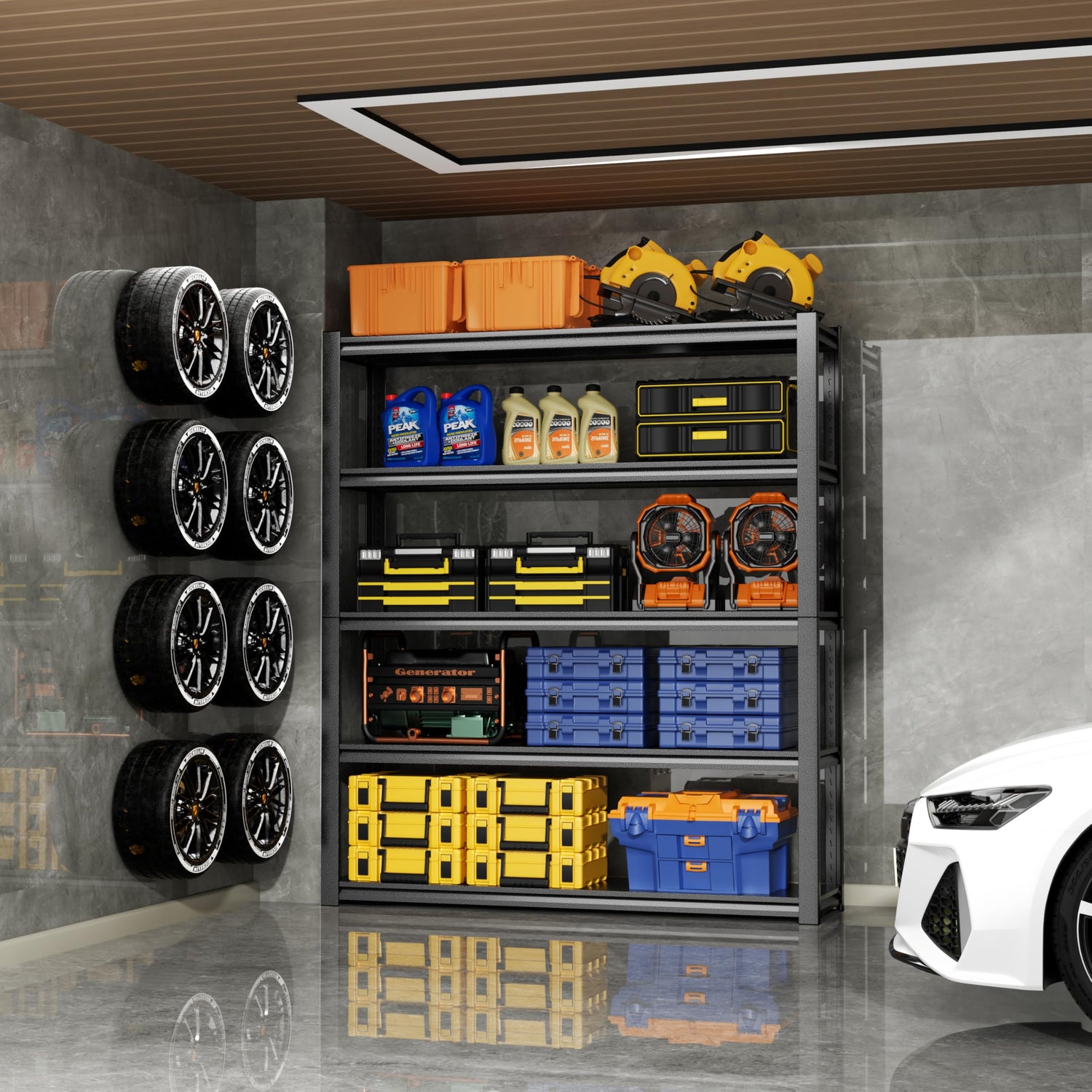 - 【Multiple Advantageous Designs】Our heavy duty garage shelving is crafted from powder-coated metal with a rust-resistant coating that outperforms wooden shelves in humid environments, so you don't have to worry about warping. All-steel construction, with excellent scratch and impact resistance,not easy to produce scratches,convenient surface cleaning, just gently wipe with a dry or damp cloth to remove dirt easily. Garage storage shelves are equipped with foot pads to protect your floor from scratches.