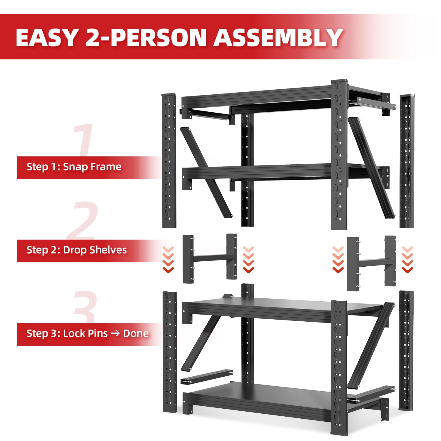 • EASY TO CLEAN INSTALL, SAFE TO USE:The surface of the garage storage rack is easy to clean and can be kept fresh simply by wiping it with a cloth. Assembly is simple, 1-2 people can quickly complete. It is equipped with a safety bolt, an anti-tipping device to ensure safe use.