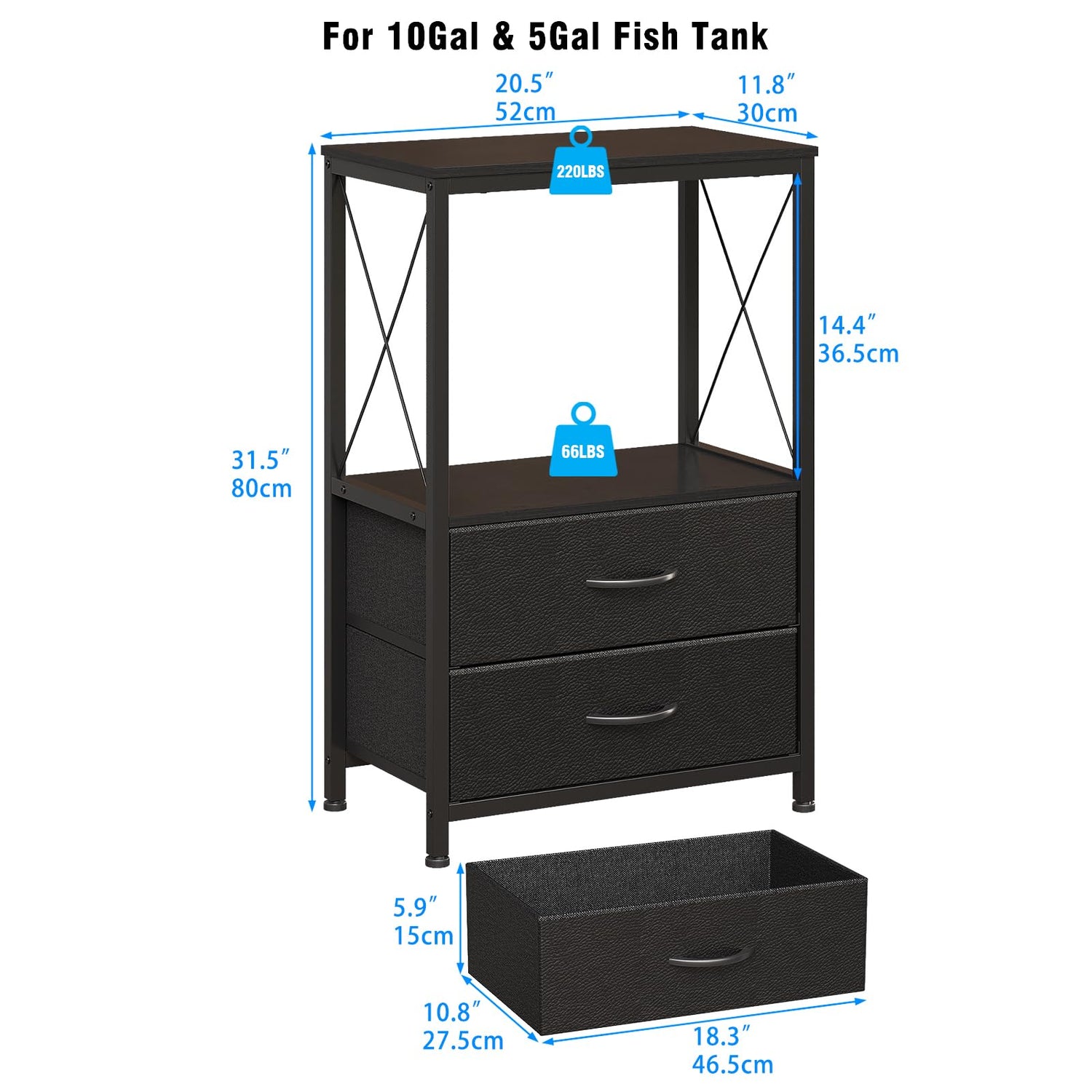 - 2-in-1 Space-Saving Fish Tank Stand: This versatile stand is ideal for 10-gallon aquariums. Its two-tier design allows you to place two fish tank on the desktop and the bottom level. Dimensions: L-20.5" x W-11.8" x H-31.5". Aquariums not included