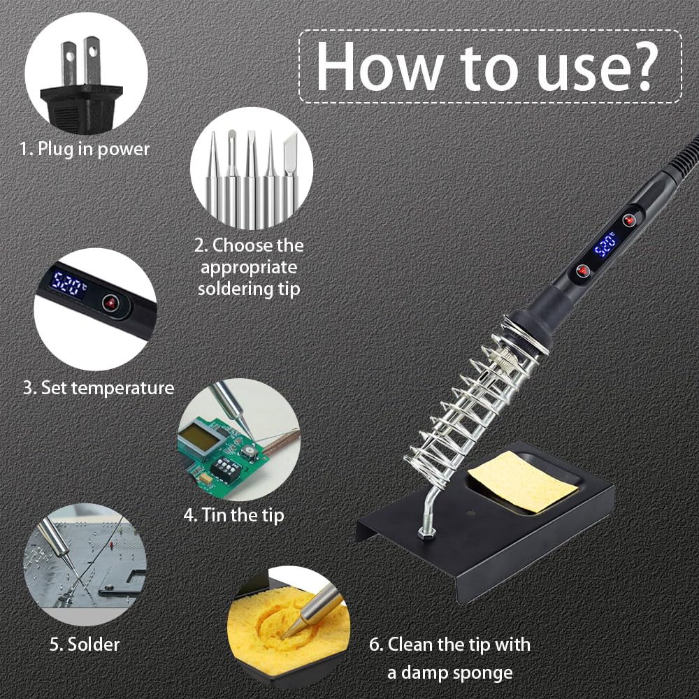 - Versatile Soldering Tips: Comes with 5 interchangeable tips for different applications; perfect for electronics repair, guitar wiring, watch components, circuit boards, mobile devices, and more