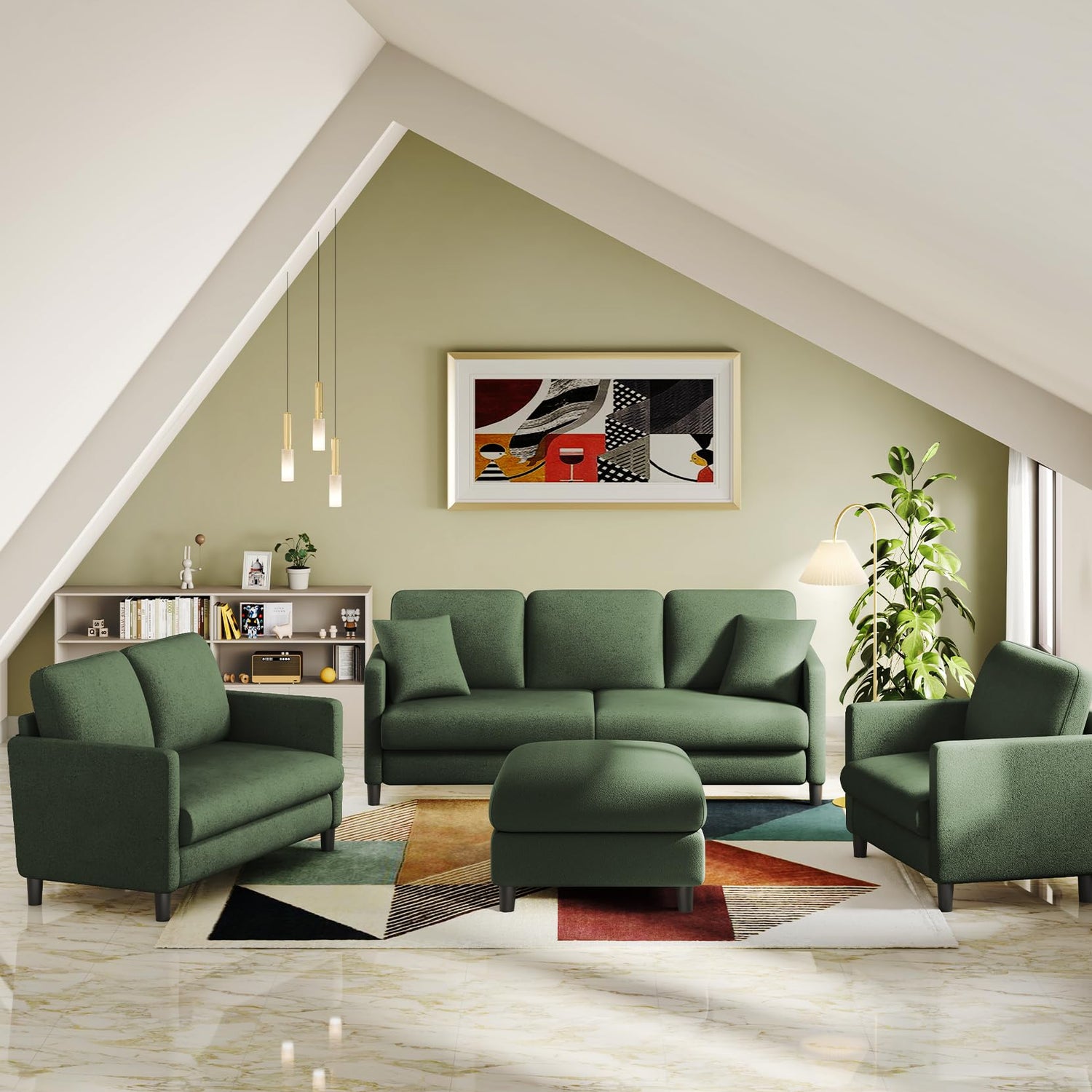 - 【EFFORTLESS MAGIC】Assembling the comfy love seat couches is very simple and requires no tools. With only 4 steps: 『①Connect bases 1 and 2, ②Install backplates 1 and 2 onto the base in sequence, ③Install 4 sofa legs, ④Place the 2 seat cushions and 2 back cushions』, then done! And you'll have a comfortable and sturdy 3 seater couch, saving time and effort.