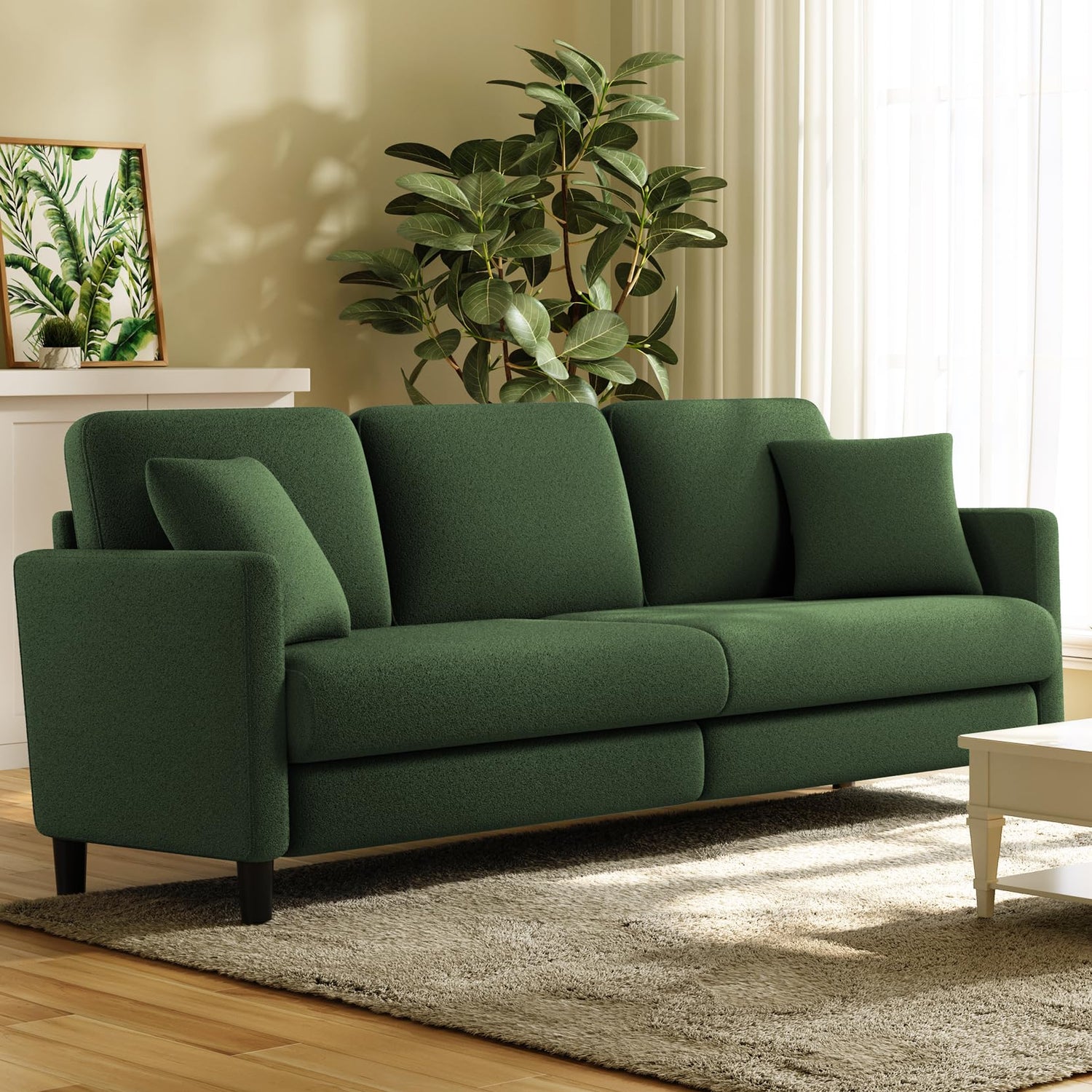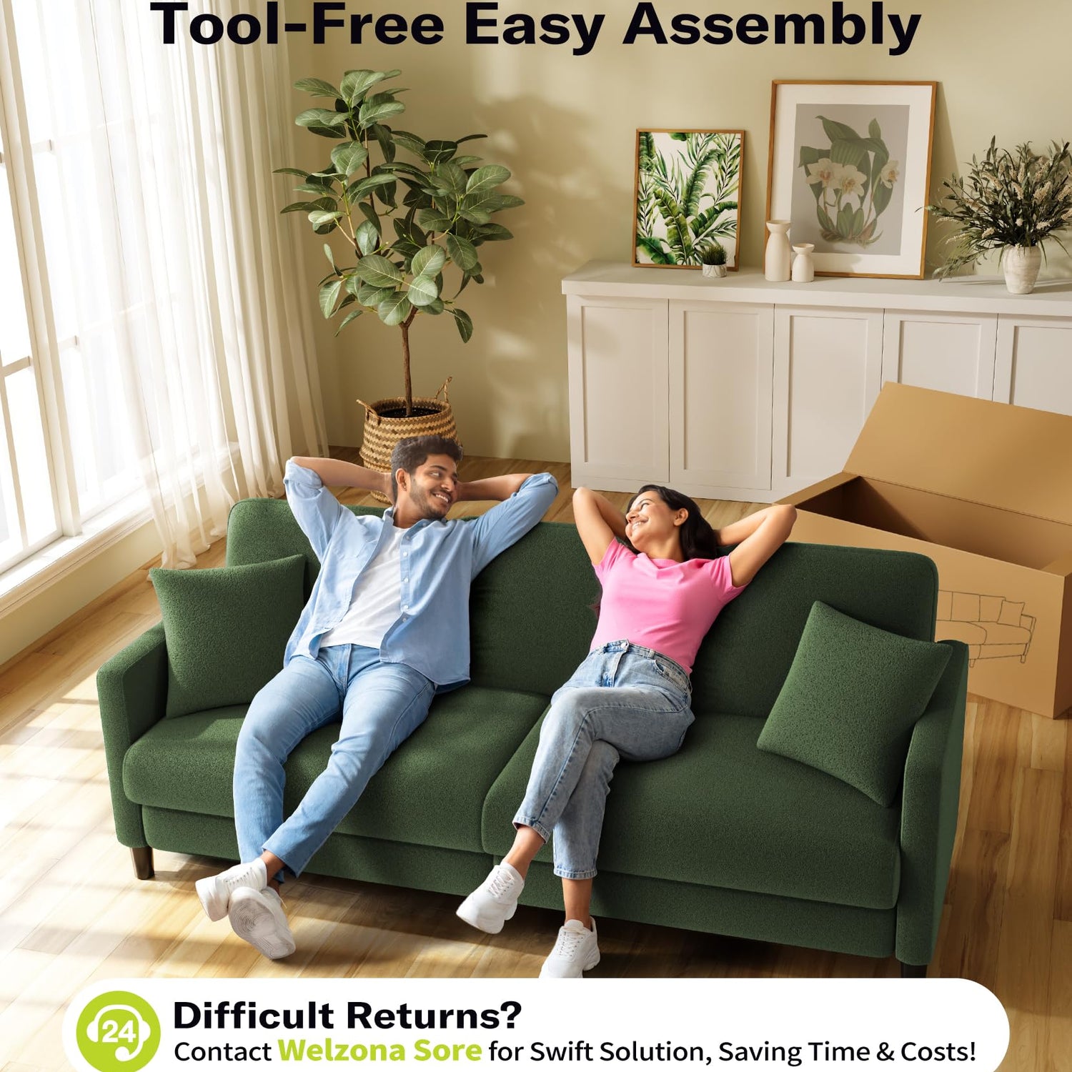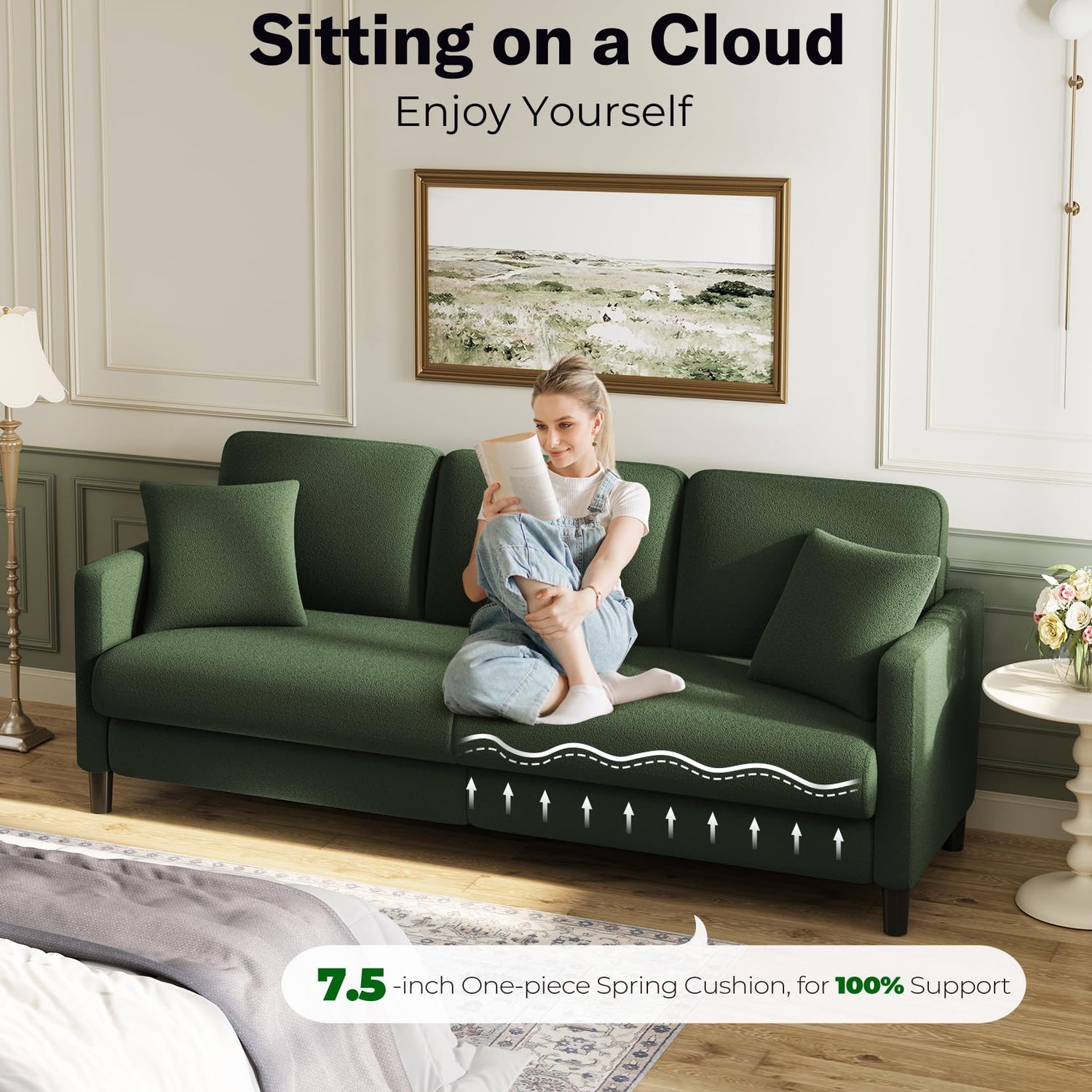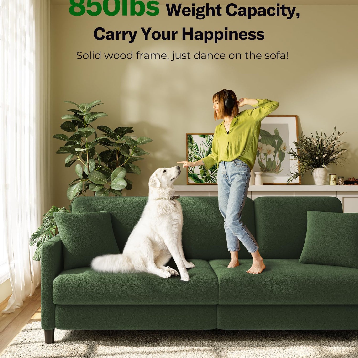 Welzona 83" Sofa Couch, Comfy Couches for Living Room, Teddy Fleece Sofas for Living Room, Tool-Free Setup Loveseat Sofa, All-Wood Love Seat Couches, Small Couch 2 Pillow Included, Green