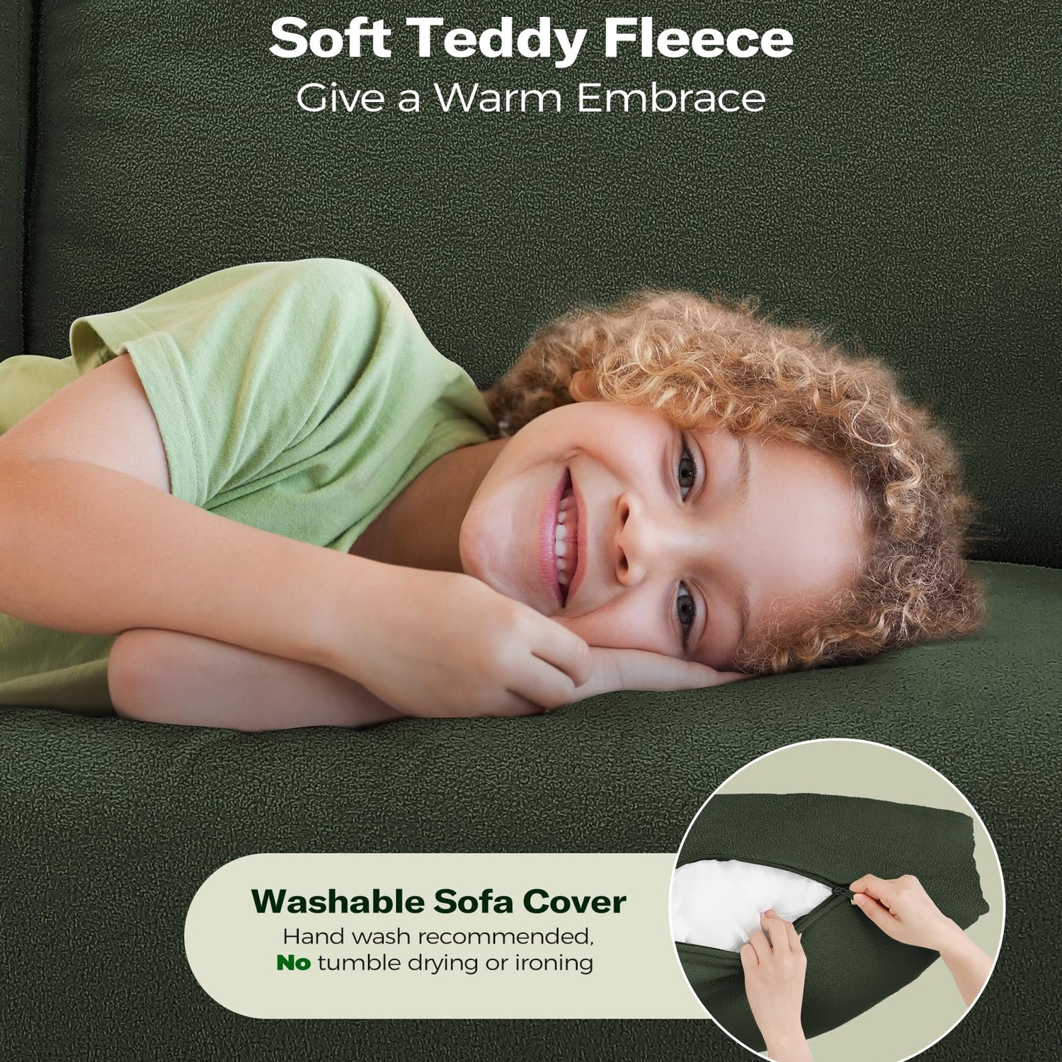 - 【WRAPPED IN BLISS WITH 2 PILLOWS】Our Sofas for Living Room are made of soft teddy fabric, providing warmth and ultimate comfort. The material of 3 seater couch feels soft is also highly resilient and wear-resistant, making it able to withstand daily use. Immerse yourself in unparalleled comfort and security as you snuggle up to or embrace 2 fluffy pillows. Whether it's the cold of winter or the heat of summer, these small couch will bring you comfort, like a warm hug.