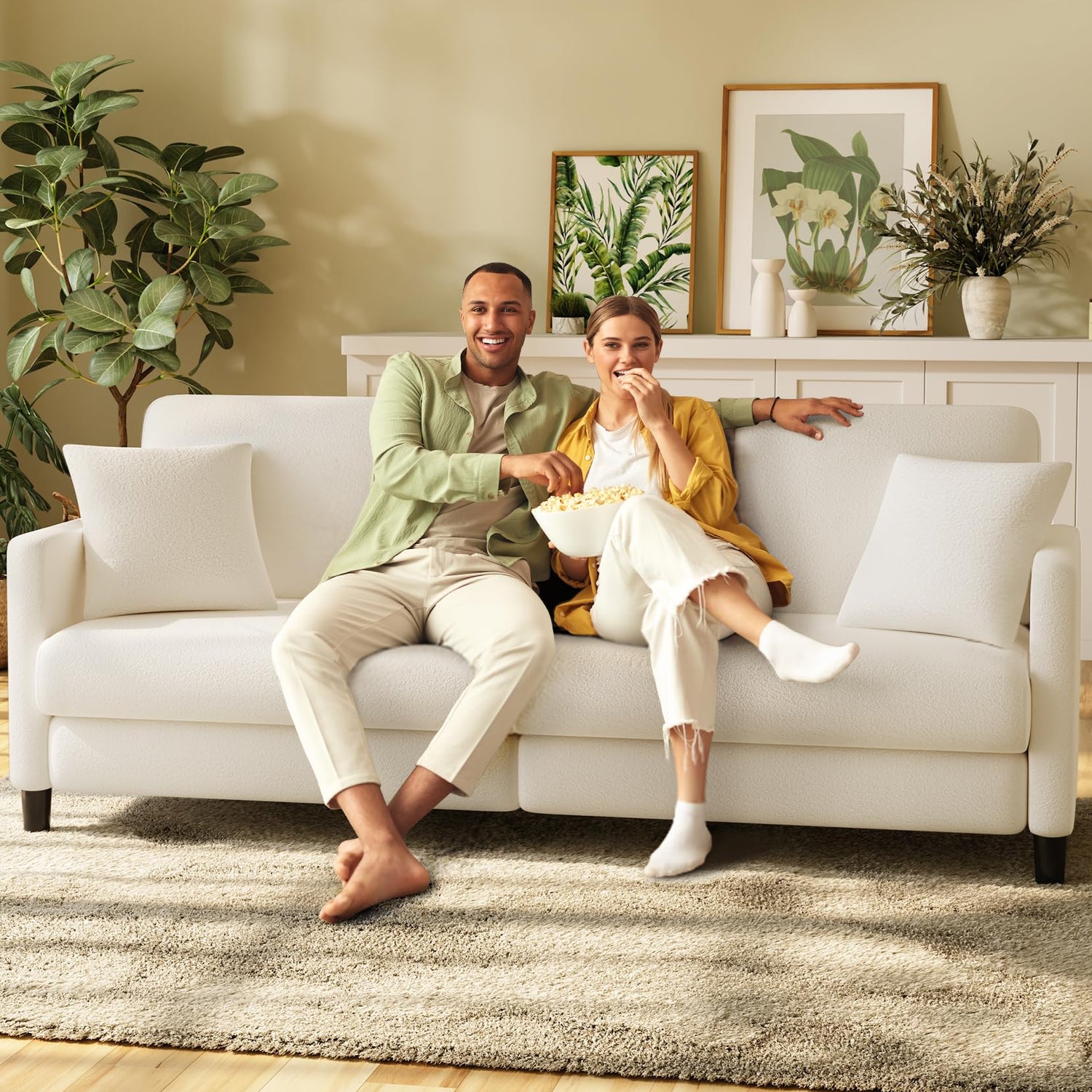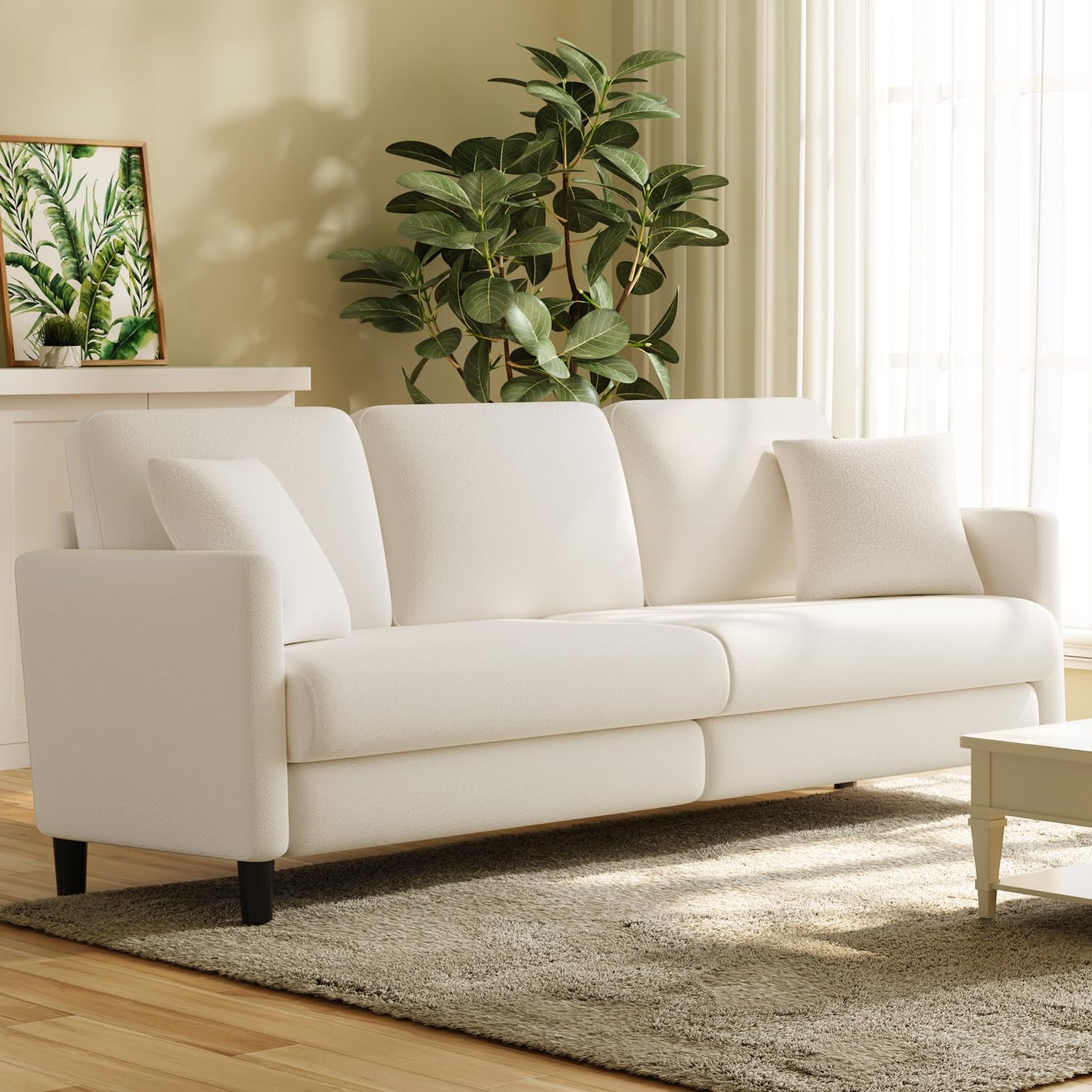 Welzona 83" Sofas for Living Room, Comfy Loveseat Sofa, Teddy Fleece Love Seat Couch, Tool-Free Setup Couches for Living Room, All-Wood Sofa Couch, Small Couch 2 Pillow Included, Beige