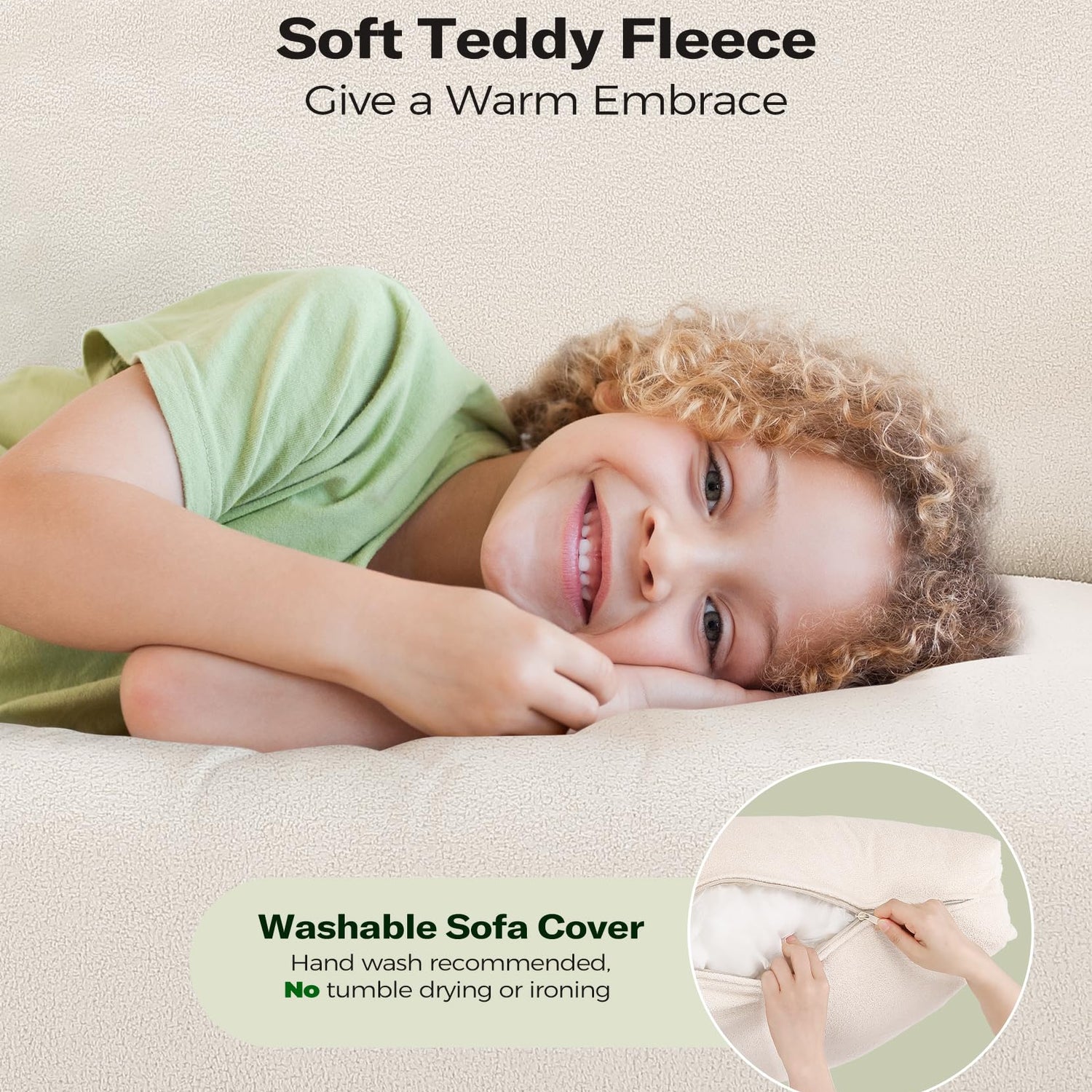 💖𝗪𝗿𝗮𝗽𝗽𝗲𝗱 𝗜𝗻 𝗕𝗹𝗶𝘀𝘀 𝗪𝗶𝘁𝗵 𝟮 𝗣𝗶𝗹𝗹𝗼𝘄𝘀: Our sofas for living room are made of soft teddy fabric, providing warmth and ultimate comfort. The material feels soft is also highly resilient and wear-resistant, making it able to withstand daily use. Immerse yourself in unparalleled comfort and security as you snuggle up to or embrace 2 fluffy pillows. Whether it's the cold of winter or the heat of summer, these couches for living room clearance will bring you comfort, like a warm hug.