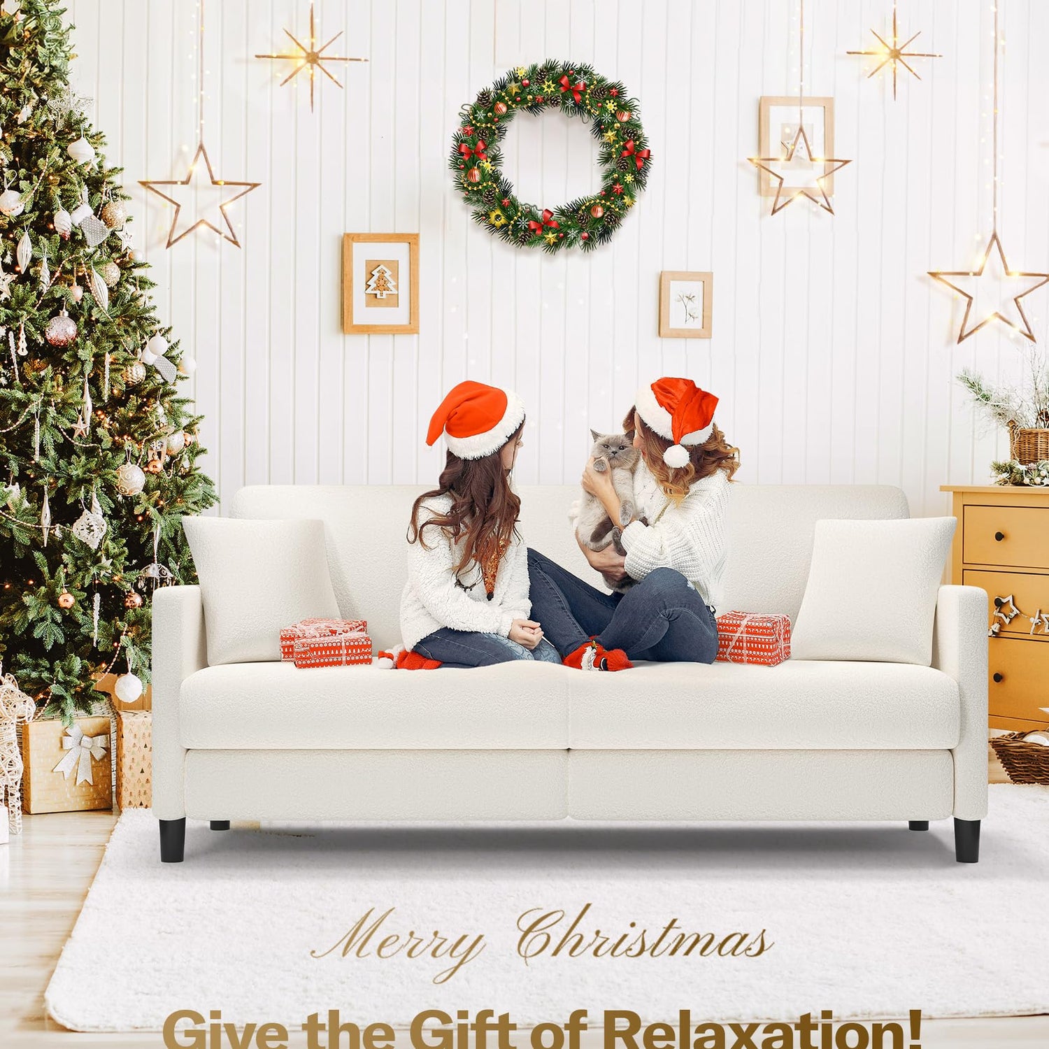 - WRAPPED IN BLISS WITH 2 PILLOWS: Our couches for living room are made of soft teddy fabric, providing warmth and ultimate comfort. The material feels soft is also highly resilient and wear-resistant, making it able to withstand daily use. Immerse yourself in unparalleled comfort and security as you snuggle up to or embrace 2 fluffy pillows. Whether it's the cold of winter or the heat of summer, these couches for living room clearance will bring you comfort, like a warm hug.