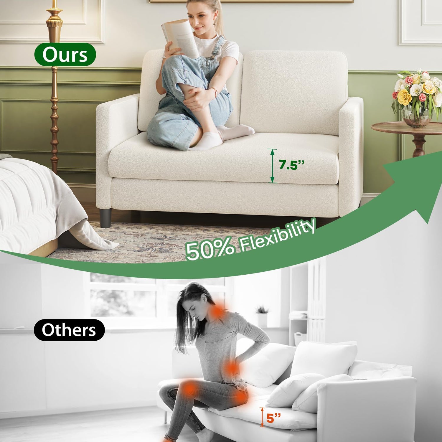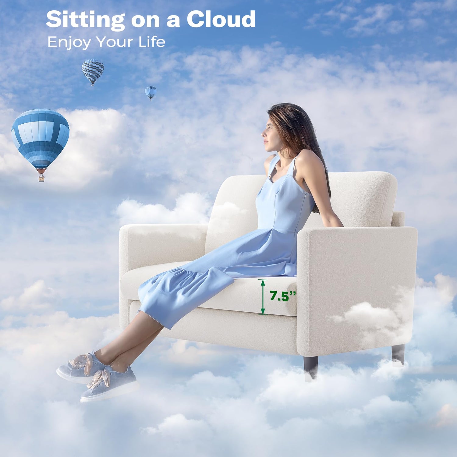 - 【SITTING ON A CLOUD】Welzona small sofa couch features a 7.5" spring seat cushion that provides excellent support and elasticity for your body. The 7.1" backrest and 22" seat depth offer extra support and waist comfort. You can sit down and feel the small couch for bedroom backrest fit and support, enjoying unparalleled comfort. Whether you're watching TV, reading books, or chatting with family, this small loveseat sofa will provide you with the ultimate comfortable experience.