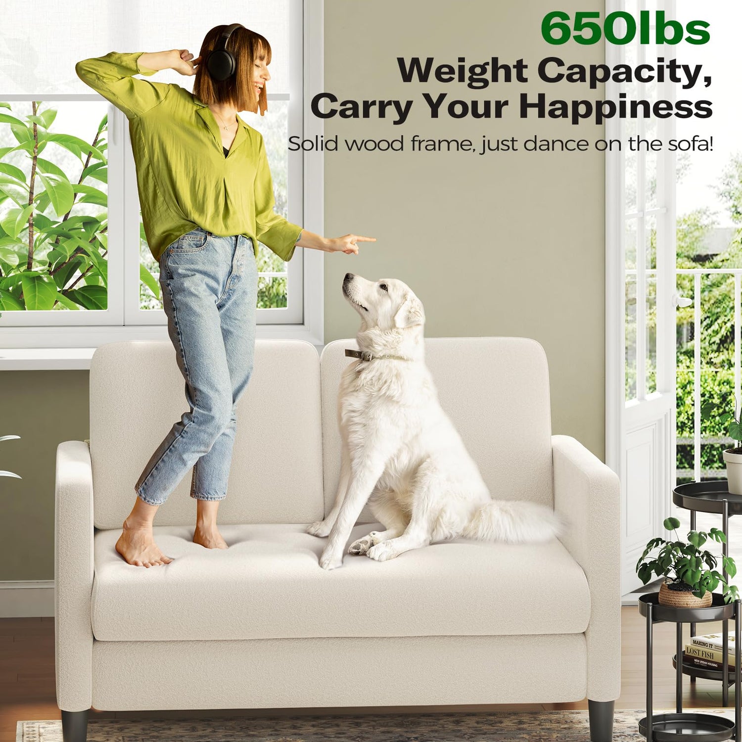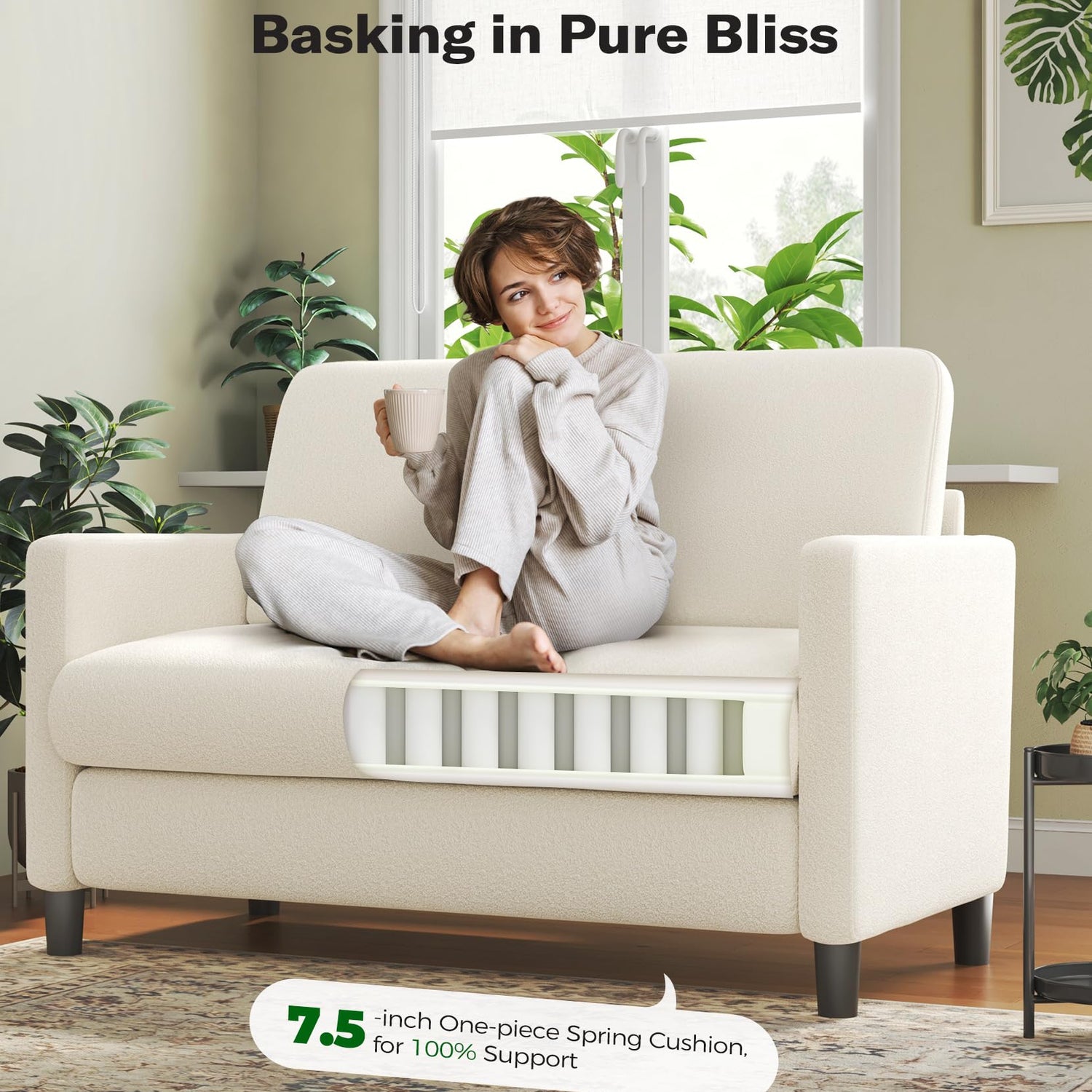 Welzona Loveseat Sofa, 51" Love Seat, Comfy Teddy Small Loveseat for Small Spaces, Tool-Free Setup Small Couch for Bedroom, All-Wood Small Couches for Small Spaces, No Pillow Include, Beige