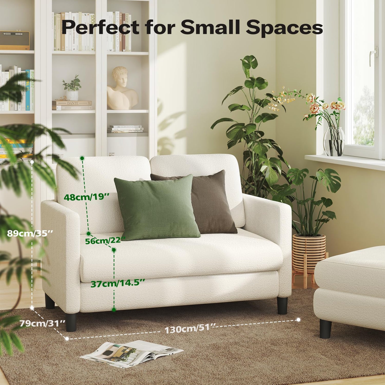 - 【COZY HAVEN FOR COMPACT SPACES】51" long and 35" wide, this small couch love seat is perfect for small spaces. Whether it's a small living room, apartment, balcony, study, or loft. Our small loveseat for small spaces also adapts to any home style, whether modern, simple, or traditional, and creates a warm small space.