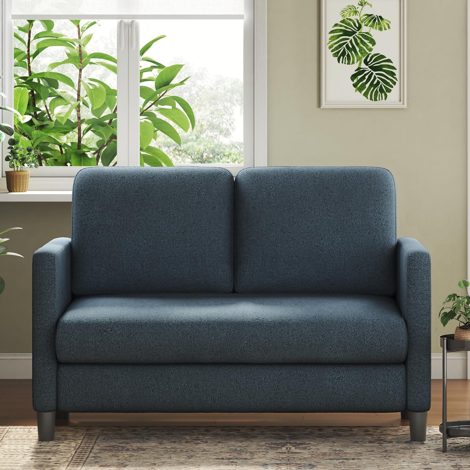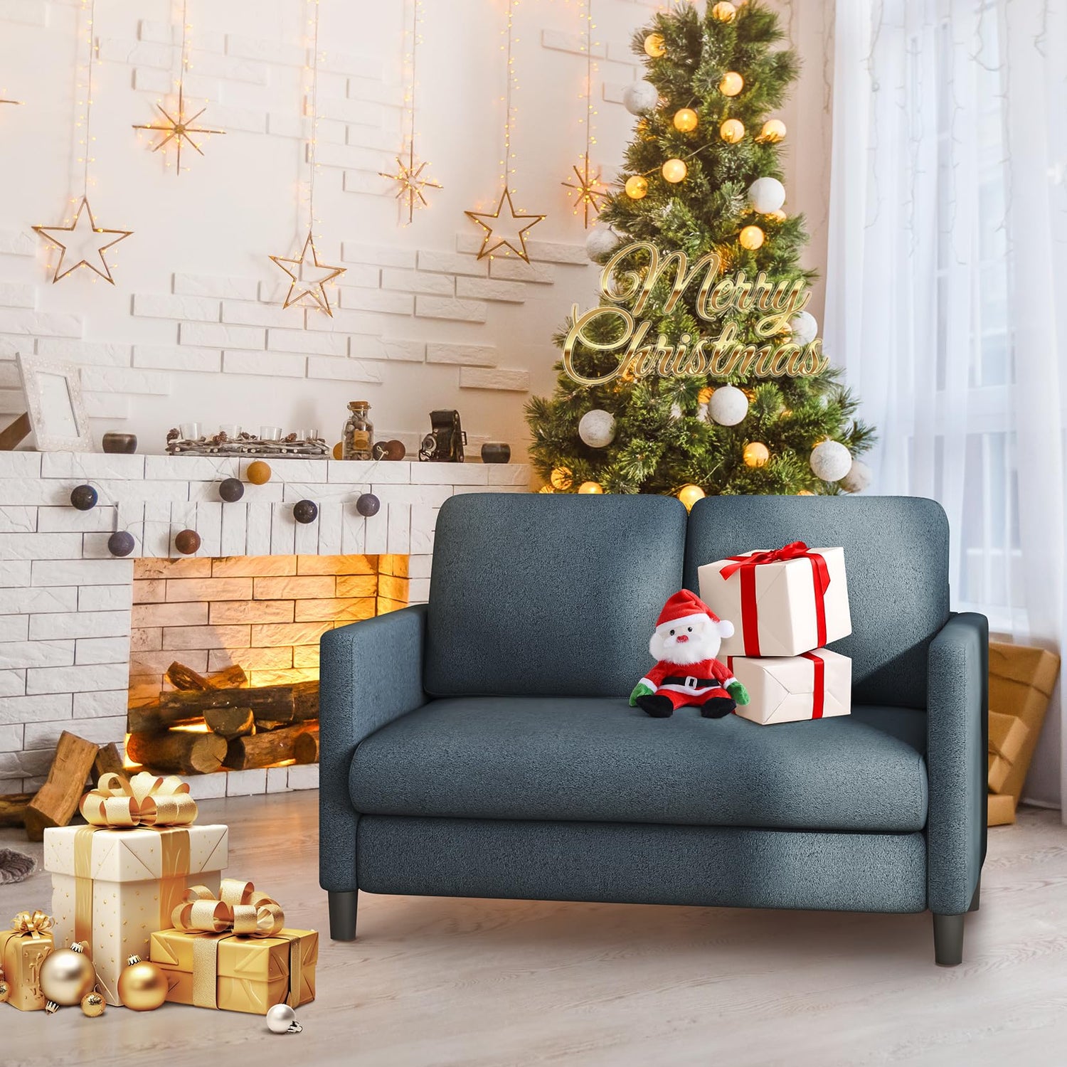 Welzona Loveseat Sofa, 51" Small Sofa Couch for Bedroom, Comfy Teddy Love Seat, Tool-free Setup Sofas for Living Room, All-wood Small Couches for Small Spaces, Small Couch No Pillow Include, Blue Grey