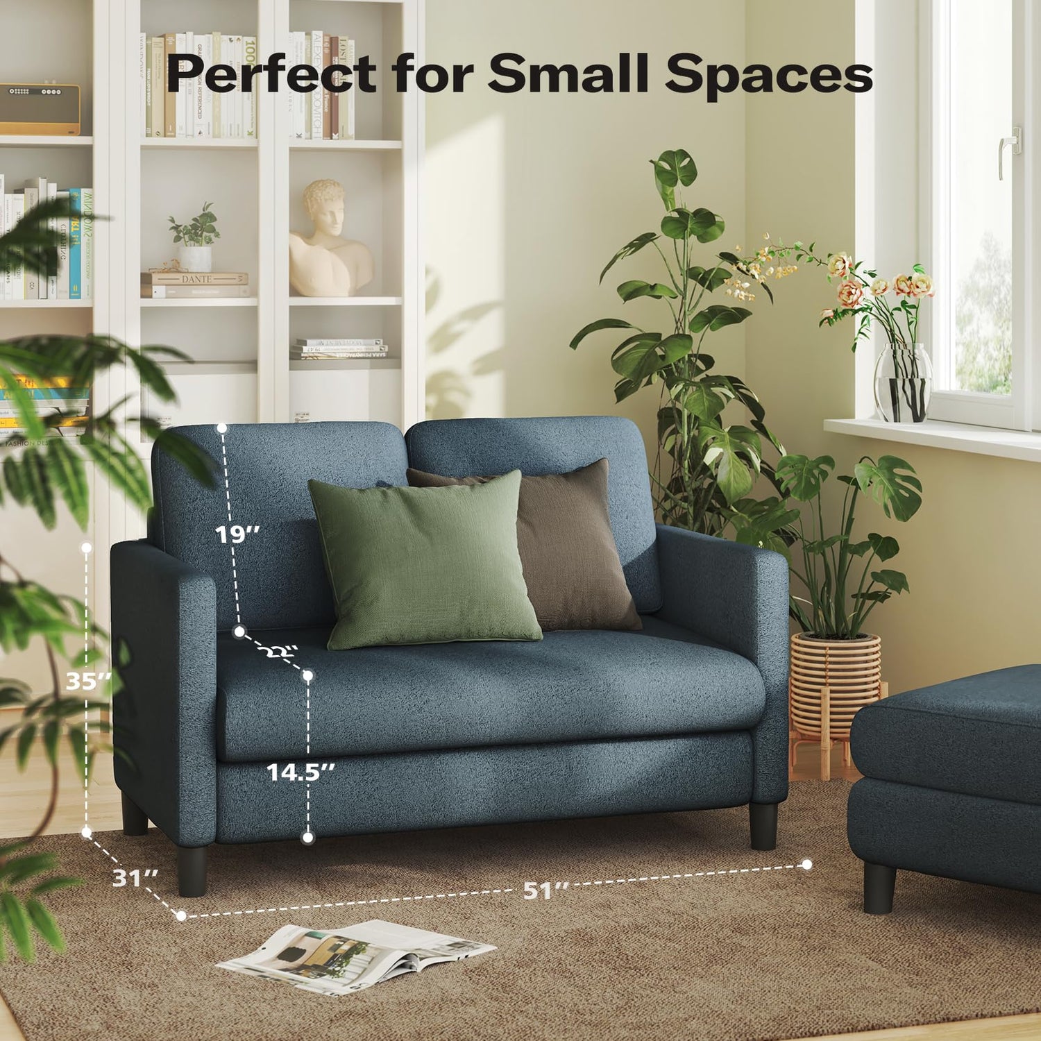 - 【COZY HAVEN FOR COMPACT SPACES】51" long and 35" wide, this small couch love seat is perfect for small spaces. Whether it's a small living room, apartment, balcony, study, or loft. Our small loveseat for small spaces also adapts to any home style, whether modern, simple, or traditional, and creates a warm small space.