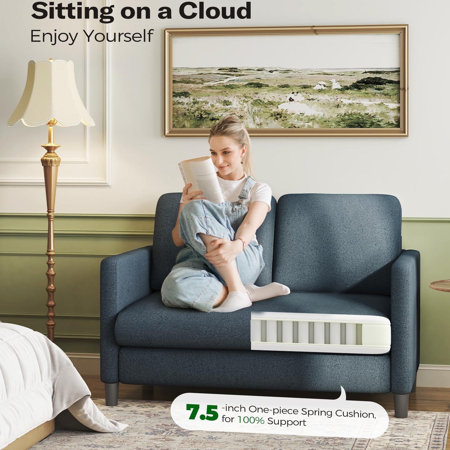 - 【SITTING ON A CLOUD】Welzona small sofa couch features a 7.5" spring seat cushion that provides excellent support and elasticity for your body. The 7.1" backrest and 22" seat depth offer extra support and waist comfort. You can sit down and feel the small couch for bedroom backrest fit and support, enjoying unparalleled comfort. Whether you're watching TV, reading books, or chatting with family, this small loveseat sofa will provide you with the ultimate comfortable experience.